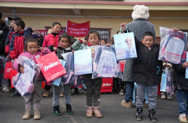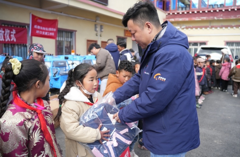 当天,与泽布同样感到欣喜的,还有错阿镇中心小学的学生们。100多套书包、文具、校服……捐赠仪式上,孩子们分别收到了期盼已久的礼物。“不仅是物质上的支持,更是精神上的鼓励,希望每一位孩子都能够健康快乐地成长。”成都高新区(简阳市)第七批对口支援工作队相关负责人说。