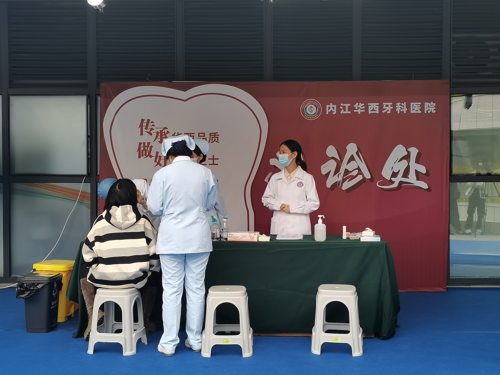 当天,内江华⻄⽛科医院还开展了义诊活动,提供常规牙齿问题检查、免费拍片检查牙齿,测血压、血糖等服务。“我经常喝咖啡,牙齿有点黄,而且尽头牙有点发炎,所以想检查一下。”市民张女士描述了自己的症状,而医生也很快做出了专业答复,并给出了治疗方案。