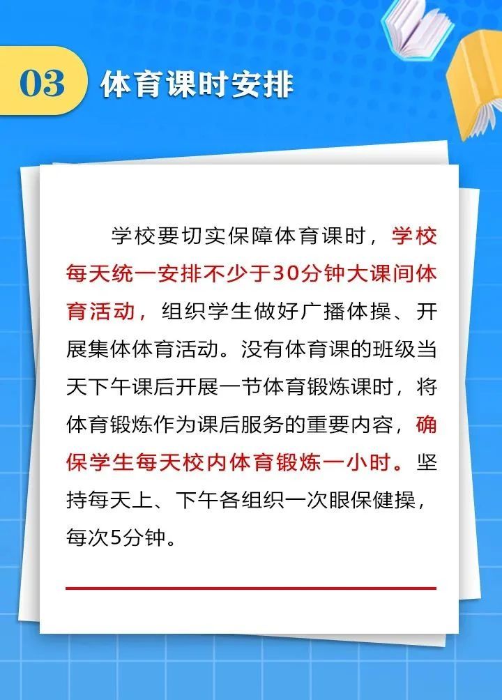 近日,成都市结合党中央、国务院和省委、省政府有关“双减”文件精神和“五项管理”要求,下发了《关于合理安排作息时间促进中小学生健康成长的通知》,要求学校做好行课安排、午间休息、课后服务、就寝时间,把课余时间留给学生、把空间留给家庭、把作业留在学校,促进中小学生健康成长,受到社会广泛关注和普遍点赞。
