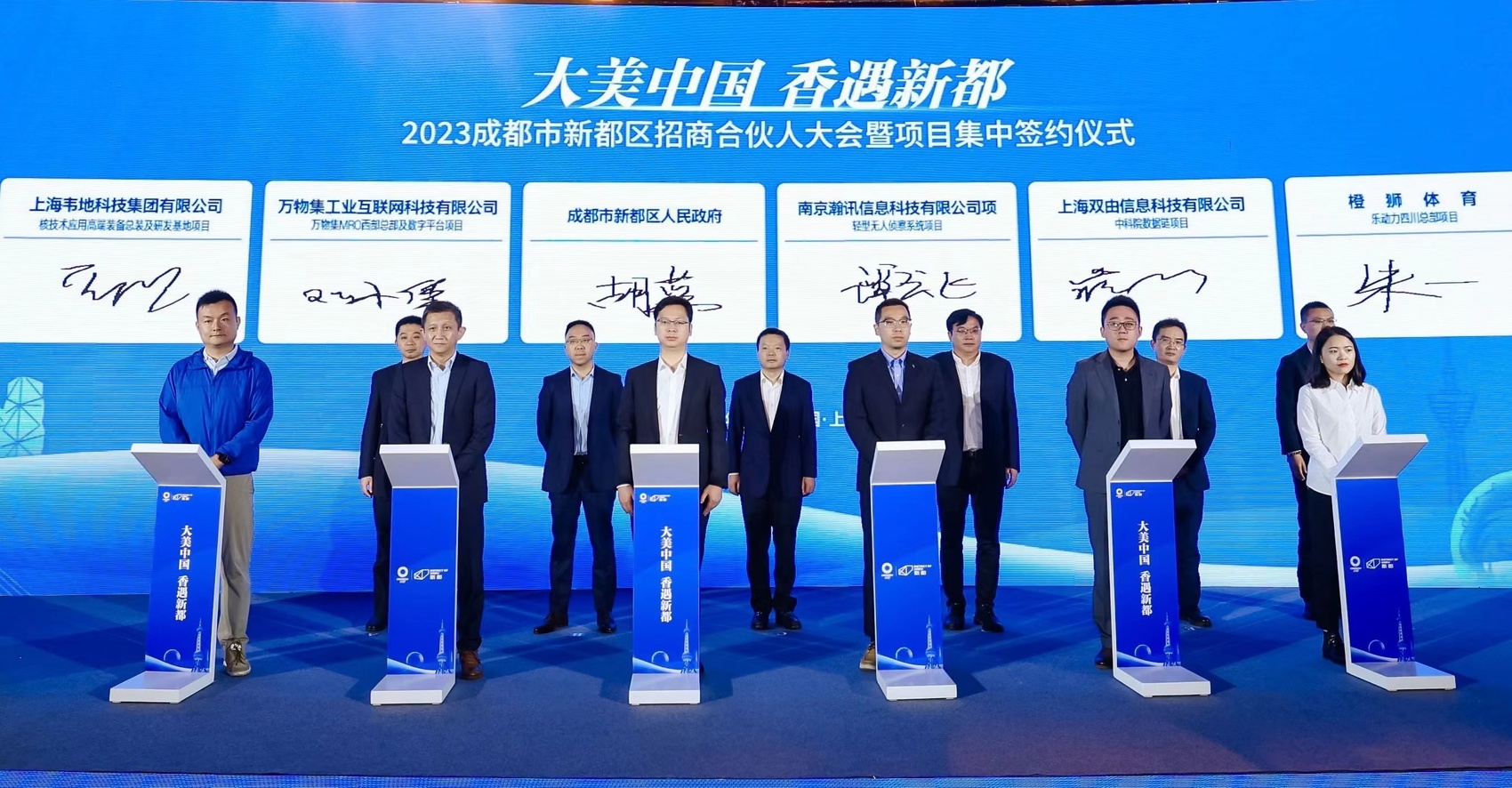 推介会上, 新都致力于有温度、有速度、更有高度的发展战略也打动了众多企业,上海韦地科技集团、南京瀚讯信息科技公司、上海双由信息科技公司等5家企业决定与新都开展长期稳定的合作。