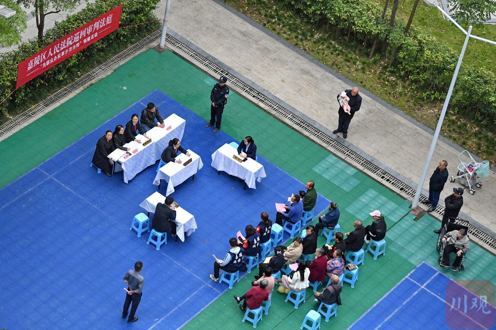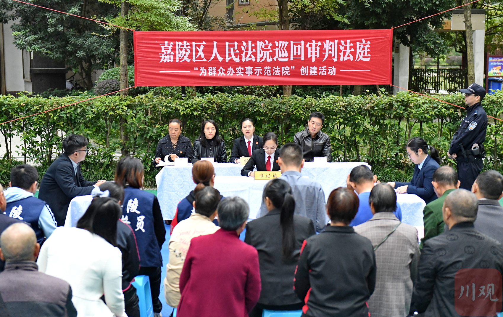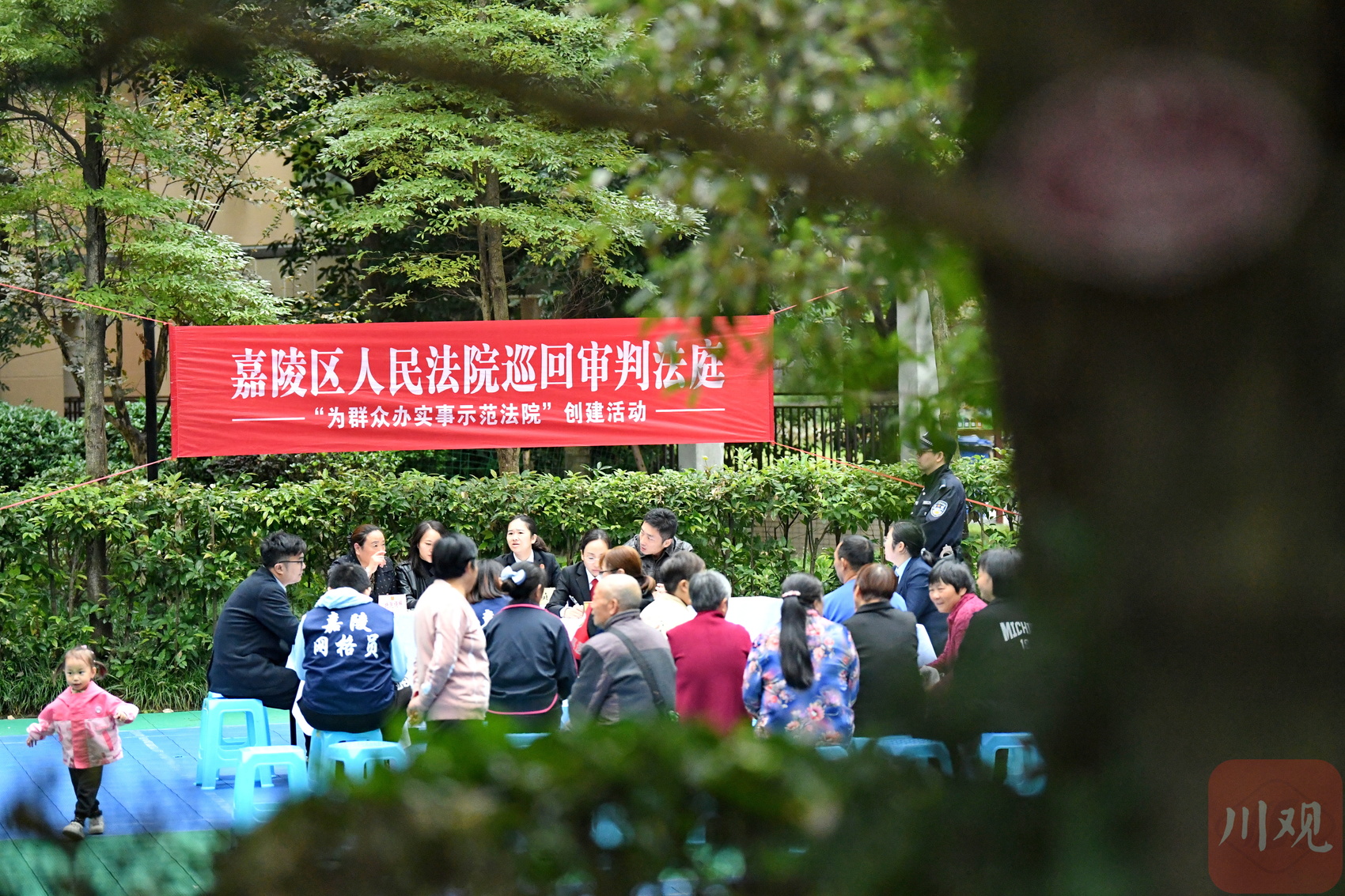 在南充市嘉陵希望城小区,嘉陵区人民法院火花法庭“巡回法庭”工作人员同特约调解员、社区和物业调解委员会一道,对数十件物业服务合同纠纷案件展开现场调解,为群众提供“家门口”的司法服务。