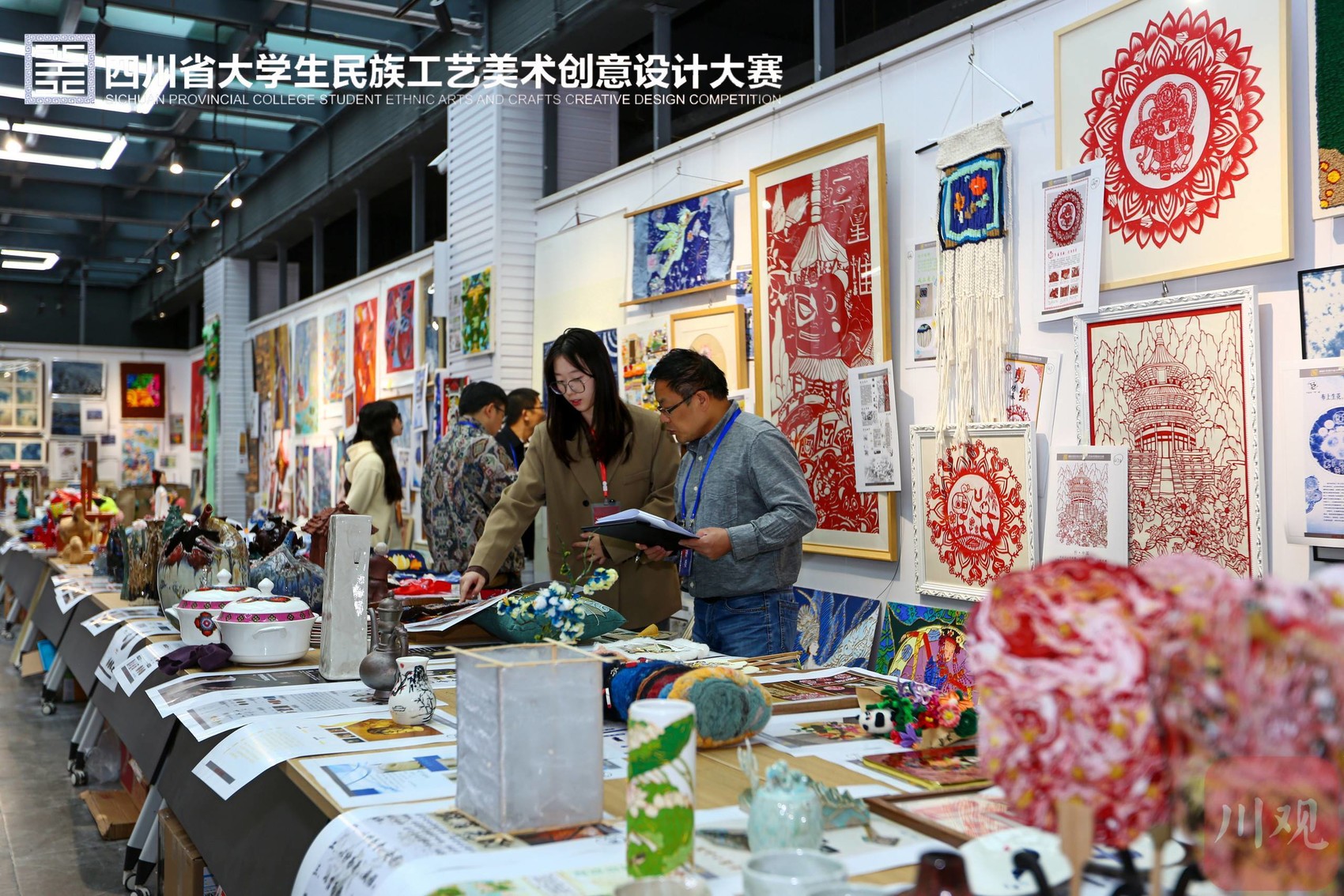 从今年六月公告发布伊始,大赛共收到四川轻工业大学、四川旅游学院、绵阳师范学院、内江师范学院、四川民族学院、成都纺织高等专科学校,以及省外长江师范学院、淮北师范大学、天津理工大学等47所高校的参赛作品1157件,涵盖少数民族工艺美术类、国潮·非遗、动画与视频类等12项内容。