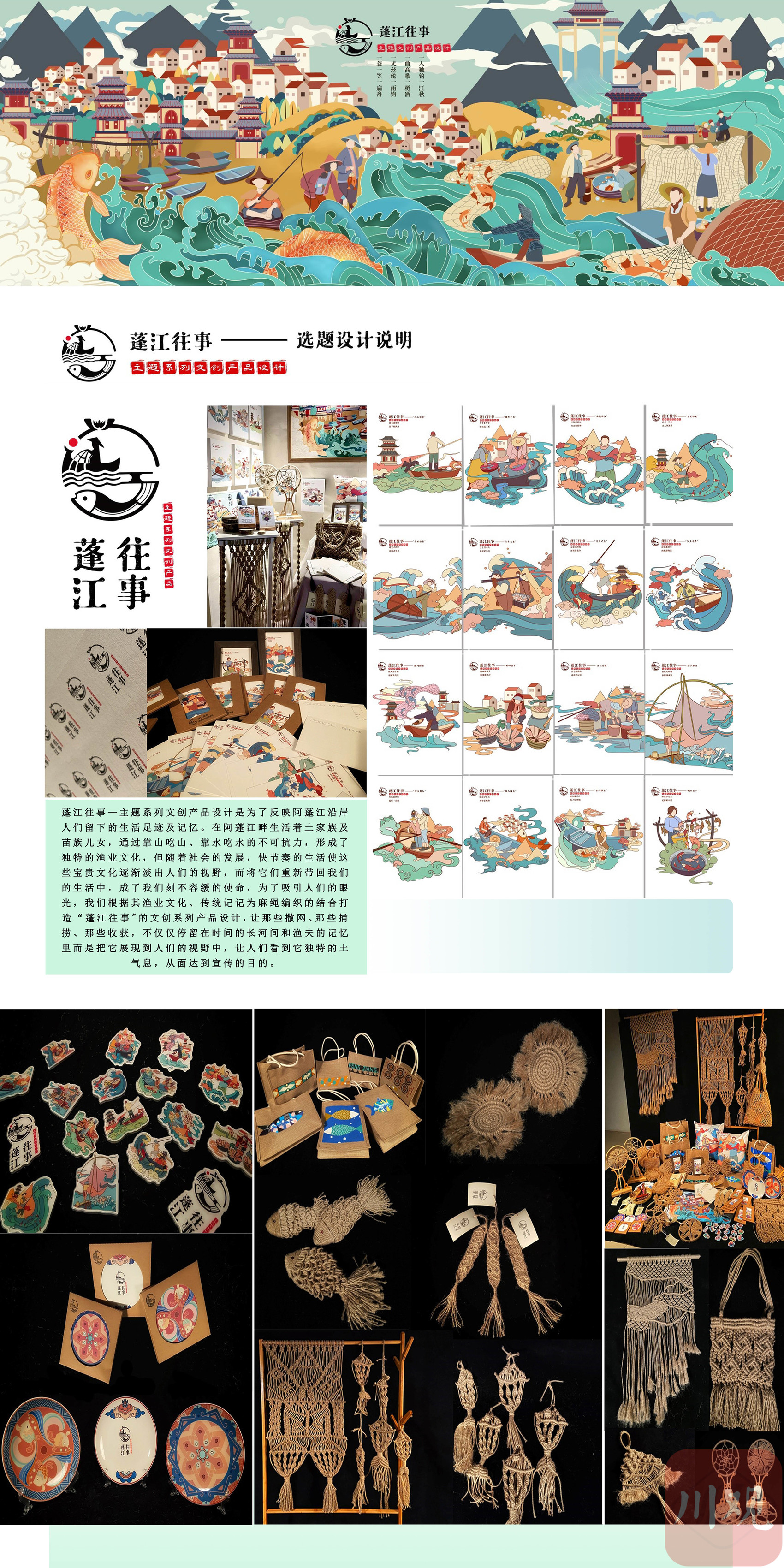 值得一提的是,这些民族工艺美术设计作品中有7件来自省外高校。其中来自长江师范学院的《“蓬江往事——主题系列文创产品设计》根据蓬江沿岸渔业文化、传统记忆与麻绳编织的结合打造“蓬江往事”文创系列产品设计,反映了蓬江沿岸人们留下的生活足迹及记忆,让那些撒网、捕捞、收获,不仅仅停留在时间的长河间和渔夫的记忆里,而是通过设计把它独特的乡土气息展现在人们面前,从而达到文化宣传的目的。