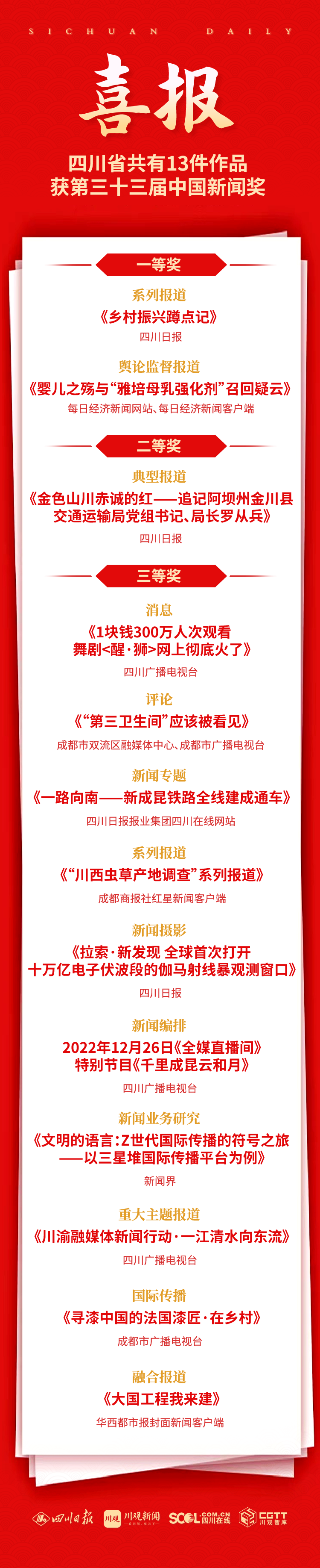 其中,四川日报报业集团6件作品榜上有名,包含1件一等奖作品、1件二等奖作品和4件三等奖作品。