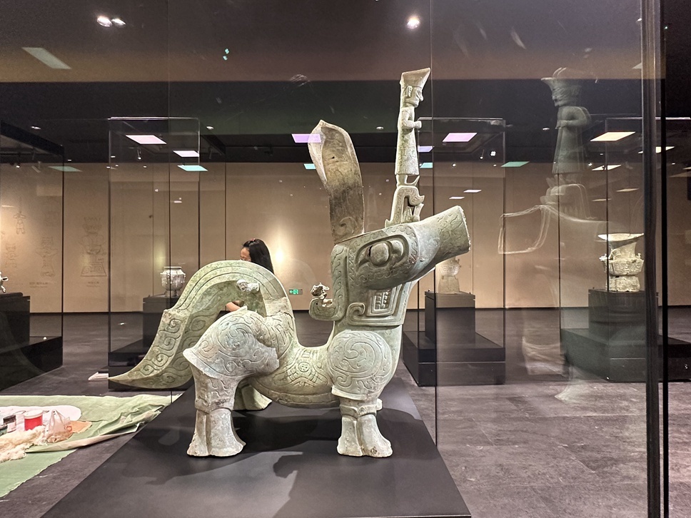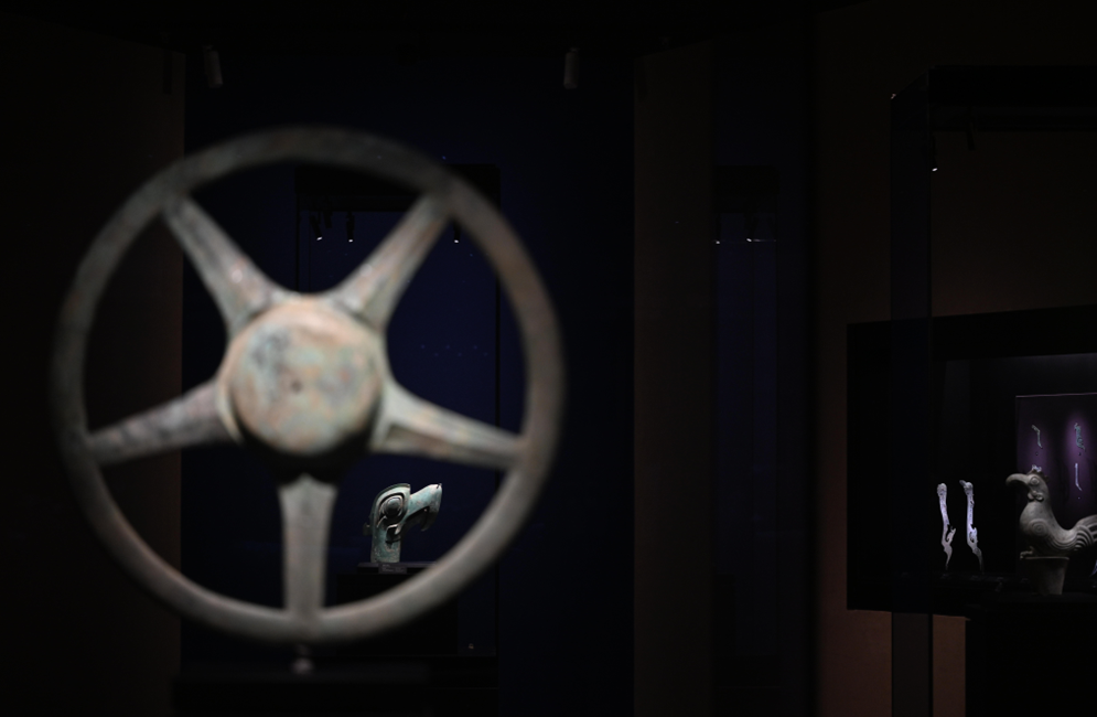 施劲松认为,这些精美的文物主要有三大类别,“一是表现崇拜或祭祀对象的器物,比如金杖、鸟形饰、青铜神树、太阳形器等;第二类则是表现祭祀场景的各类神坛、人像;第三类是祭祀用器,主要包括了青铜容器、玉石器、象牙、海贝等等。三类器物共同表达了两个主题,也就是太阳崇拜和王权。”