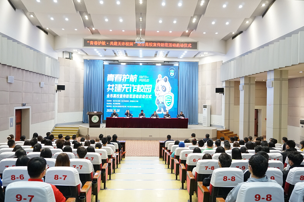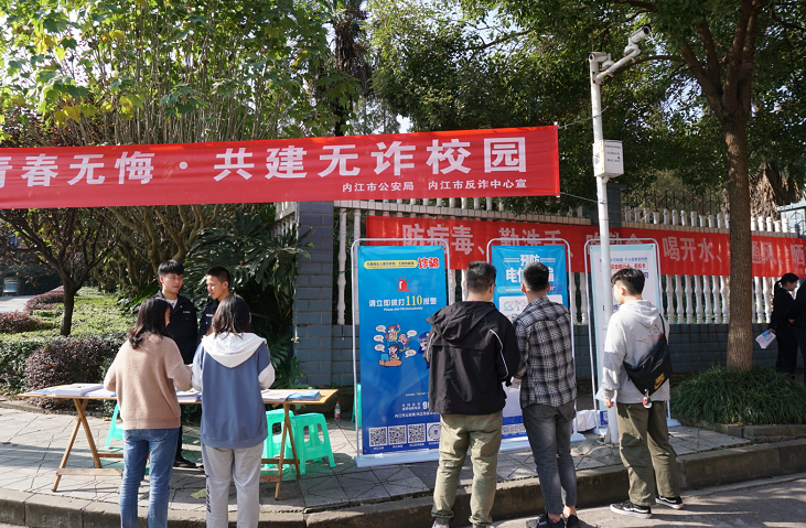 当前,高校师生群体已成为电信网络诈骗犯罪主要侵害群体之一。为贯彻国家打击治理电信网络新型违法犯罪会议精神,切实维护内江市高校师生人身安全和经济权益,内江市公安局、教育局、团市委等部门联合组织开展的全市高校“青春护航•共建无诈校园”宣传防范活动今日正式启动,为期三个月,通过在内江师范学院等高校举办反诈骗专题讲座、招募大学生反诈宣传志愿者、举办反诈微视频创作大赛、开展法制教育宣传活动、打造反诈宣传媒体矩阵等线上+线下活动同步推进的方式,实现反诈骗宣传高校全覆盖、高校学生全覆盖、高校教职工全覆盖。