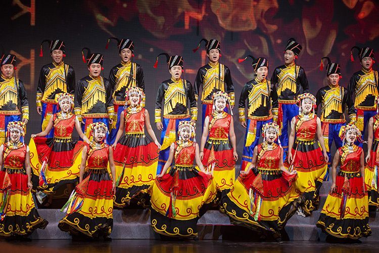 成都大学参演作品《彝歌》对彝族音乐的演唱形式和表演技法进行了很好的继承创新,歌曲节奏明快,旋律优美,歌声悠扬婉转,具有强烈的民族风格和时代特色,表达了彝族青年男女对新时代美好生活的热情向往和对改革发展成果的赞美之情。