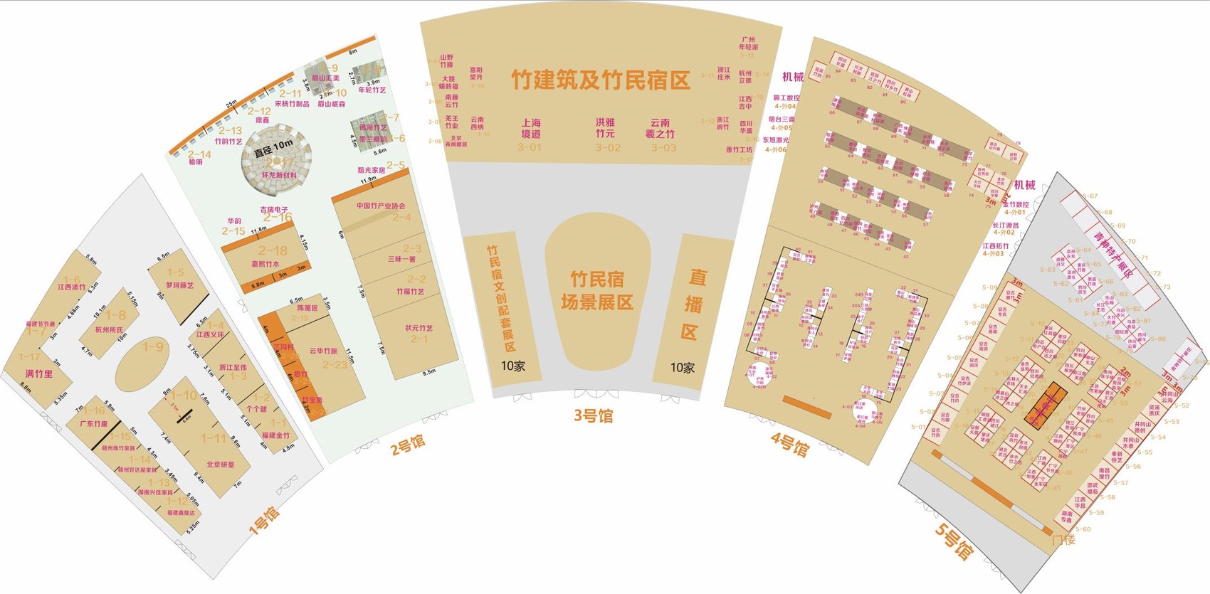 此次竹博会展出面积达15000平方米,共5个展馆,设有眉山综合展区、竹非遗文化展区、竹工艺品展区、竹机械展区、竹民宿展区、竹食品展区、竹新型材料展区、线上直播间等8大展区,集中展示竹建材、竹纤维制品 、竹浆纸等各类竹产品,以及竹产业科技成果、竹文旅康养等业态。11月10日—11日参观时间为9:00—17:30,11月12日参观时间为9:00—11:30。