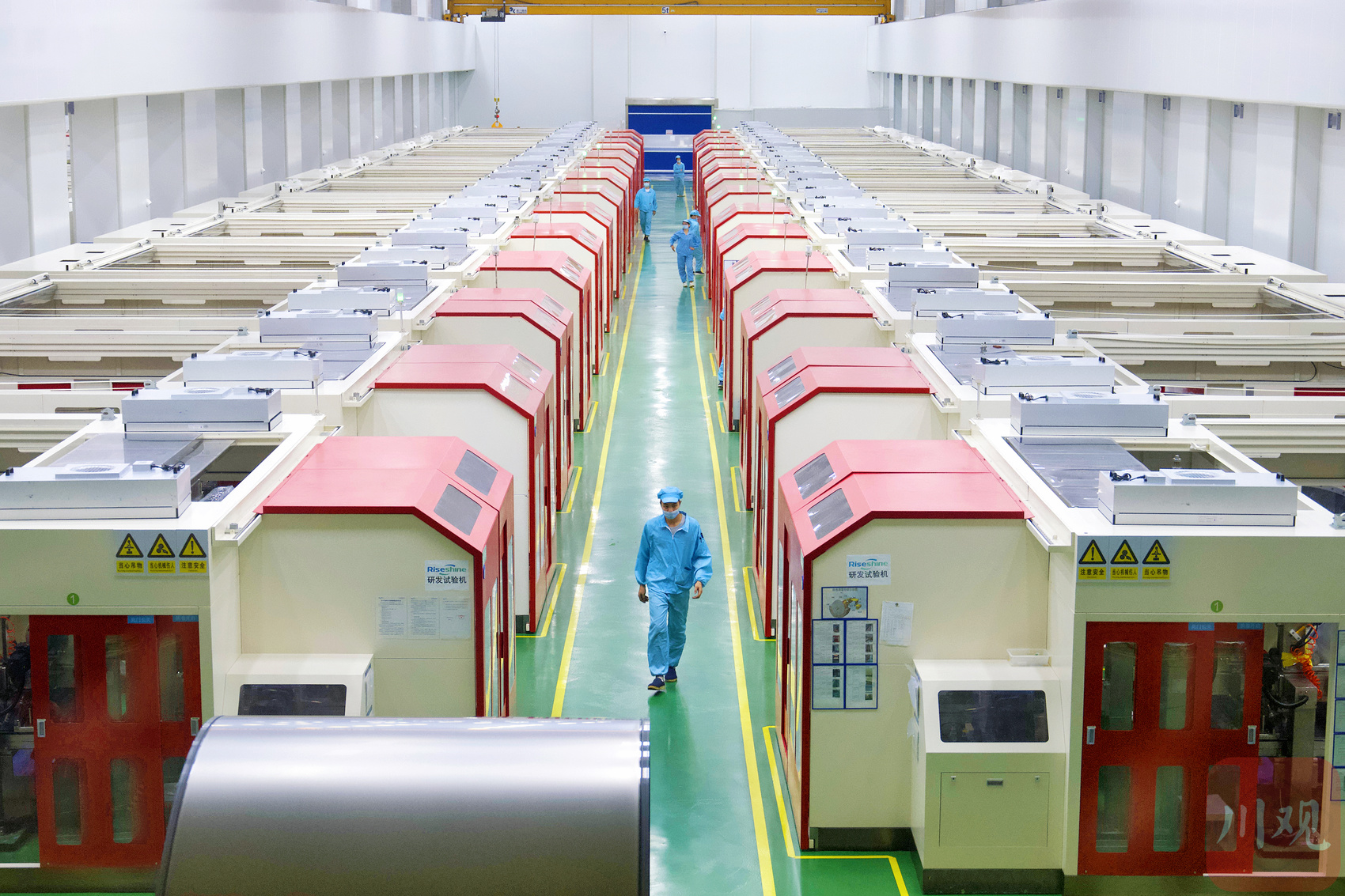 泸州去年引进的四川日盛铜箔科技股份有限公司,主要生产4.5-12微米电解铜箔。如果一根头发劈成10条丝,每一丝的直径都比铜箔厚。更薄意味着更小的电阻,因此它成为新能源汽车动力电池、数码与储能电池领域的优质导电材料。项目去年9月开工,今年3月开始生产,具备年产40000吨高档锂电铜箔生产能力,年产值可达35亿元,已成泸州先进材料产业新的增长极。