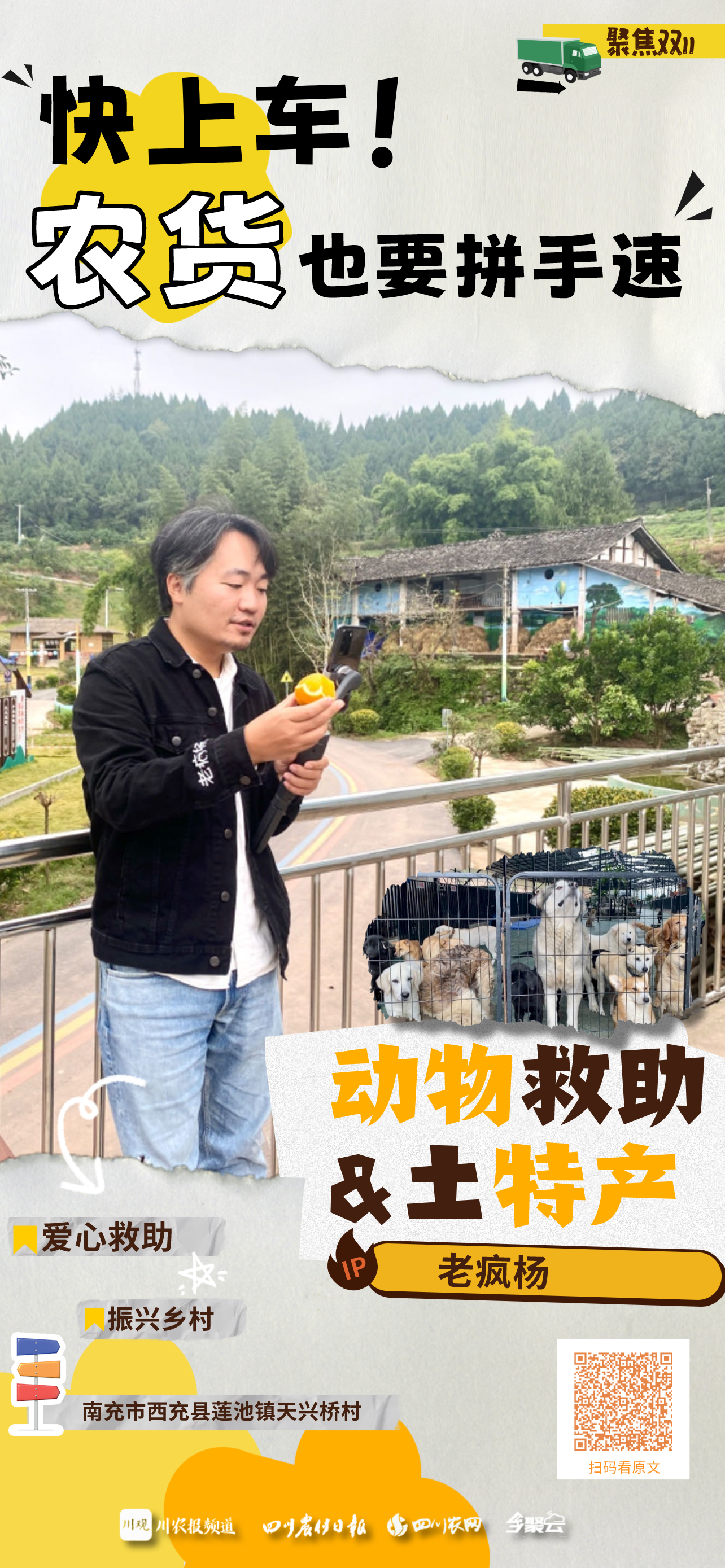 “去乡下直播救助的时候,很多粉丝对镜头里偶然出现的农产品感兴趣,想让我们‘代购’。”一直跟着杨兴做动物救助的工作人员回忆,2019年他们救助的流浪动物超过2000只,杨兴的小金库所剩无几,经济压力很大。思索良久后,杨兴开了直播间给粉丝代购南充周边的土特产,其中,销量最好的是脐橙,那一年卖了几万斤。