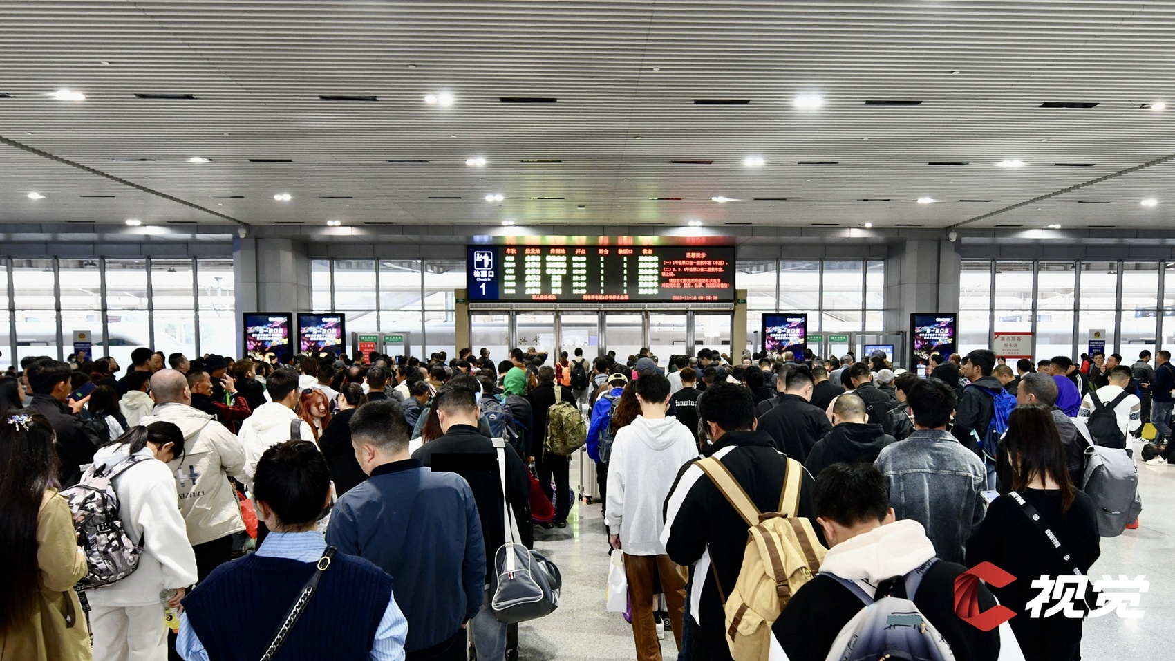 旅客在成都南站准备检票乘车