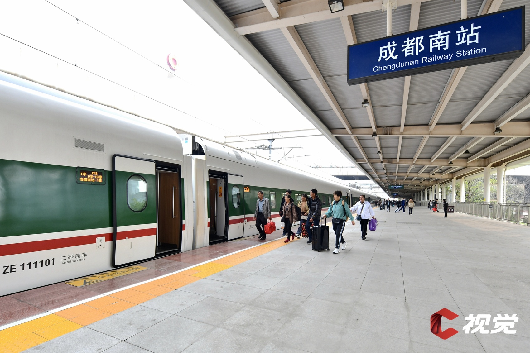 旅客在成都南站有序乘车