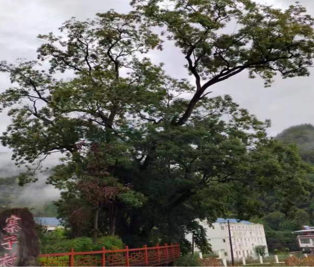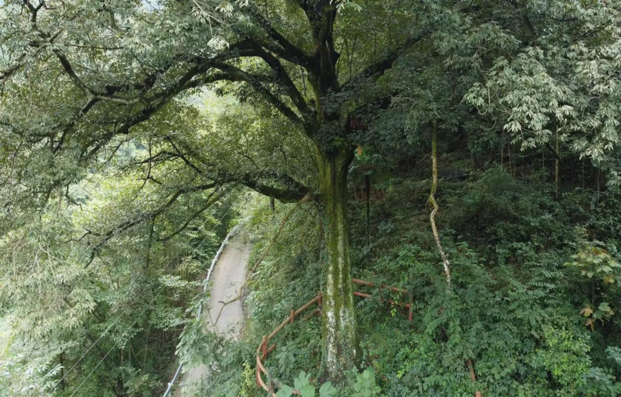 虽遭雷击顶端枝干折损,但依然长势良好且树形优美,是凉水至茶坝路段的重要标识。