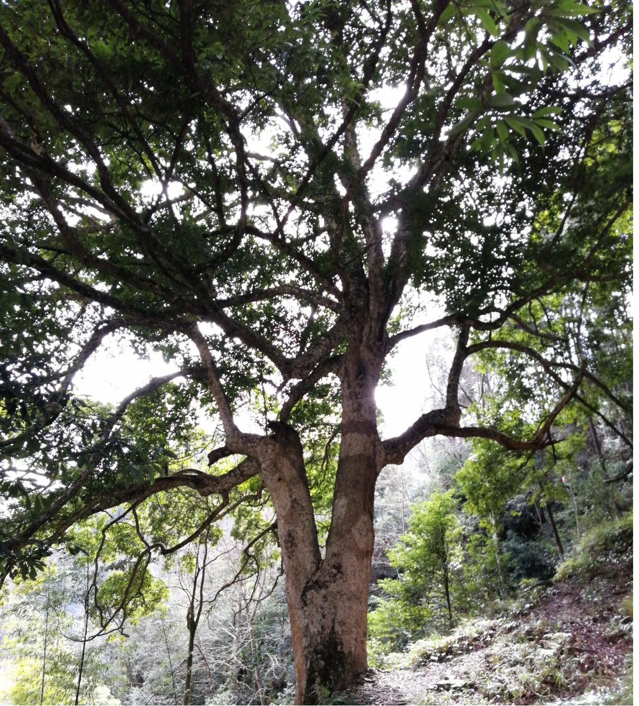 该树为四川省内目前报道保存最大的小叶桢楠古树之一,胸径1.85米,树高41米,冠幅投影面积2.35亩,树形优美,枝叶茂盛。