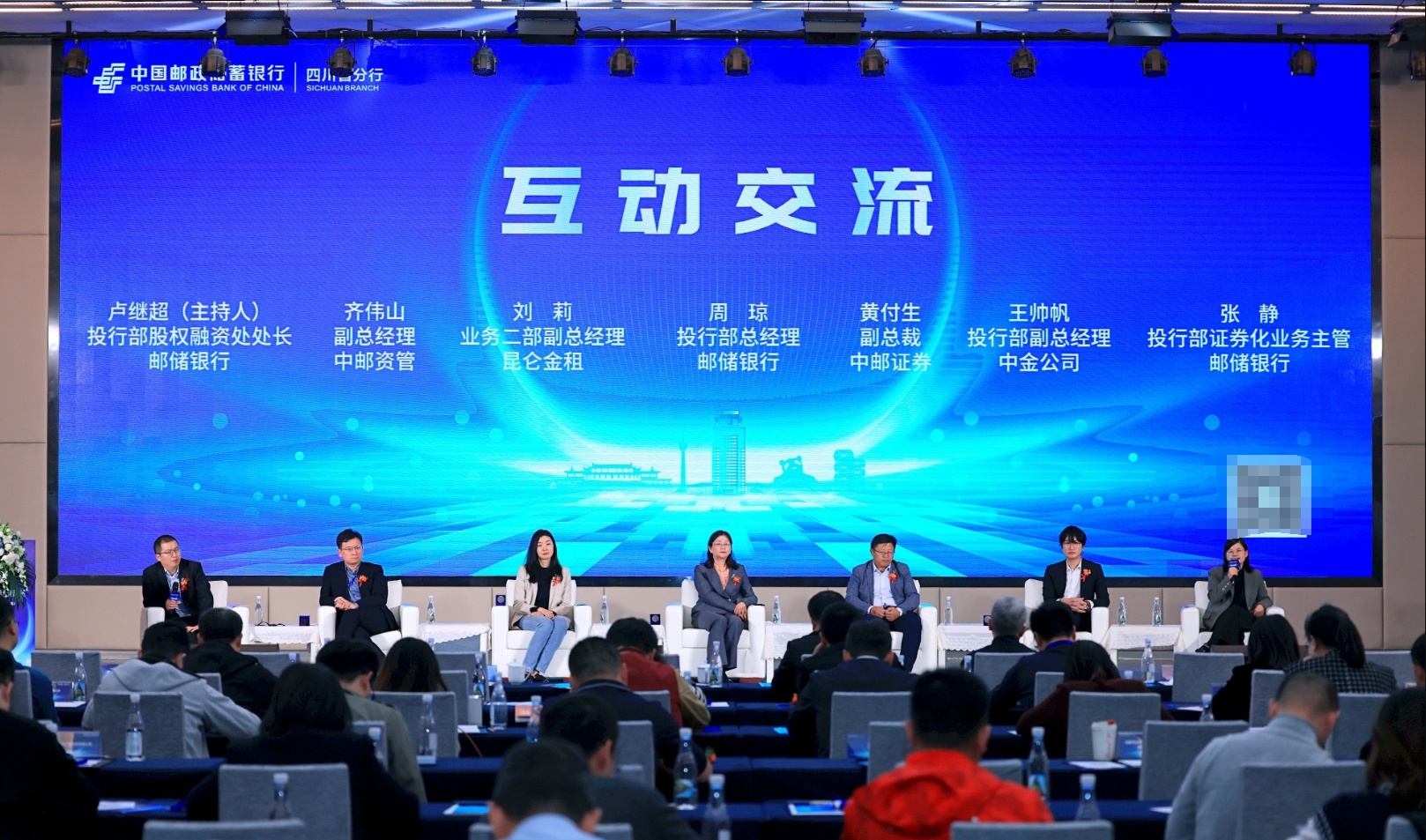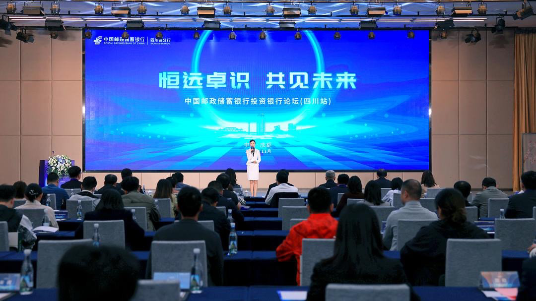 2023年11月10日,中国邮政储蓄银行投资银行论坛(四川站)在成都举行,中国邮政储蓄银行四川省分行(简称“邮储银行四川省分行”)党委委员、副行长邹青春出席并致辞,中国邮政储蓄银行总行投资银行部总经理周琼、中国邮政储蓄银行总行投资银行部股权融资处处长卢继超,中邮证券副总裁、首席经济学家兼研究所所长黄付生等作主旨演讲,四川发展控股有限责任公司、四川省投资集团有限责任公司等100余家企业主要负责人参会。