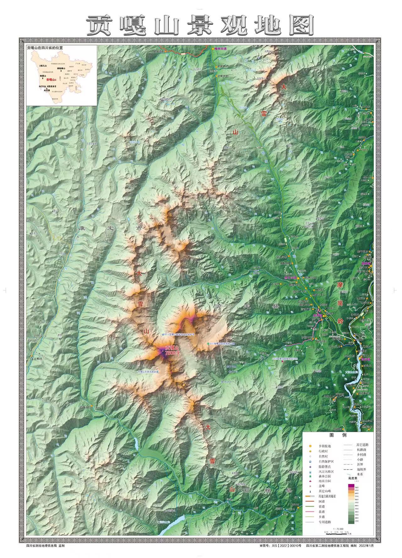近日,四川省测绘地理信息局公布了贡嘎山等9座山峰景观地图。据悉,这是在自然资源部联合国家林业和草原局向社会公布贡嘎山等9座山峰高程数据后,更新为最新高程数据的9座山峰景观地图。山峰景观地图是什么?有什么特点?就此,记者采访了四川省测绘地理信息局相关负责人。