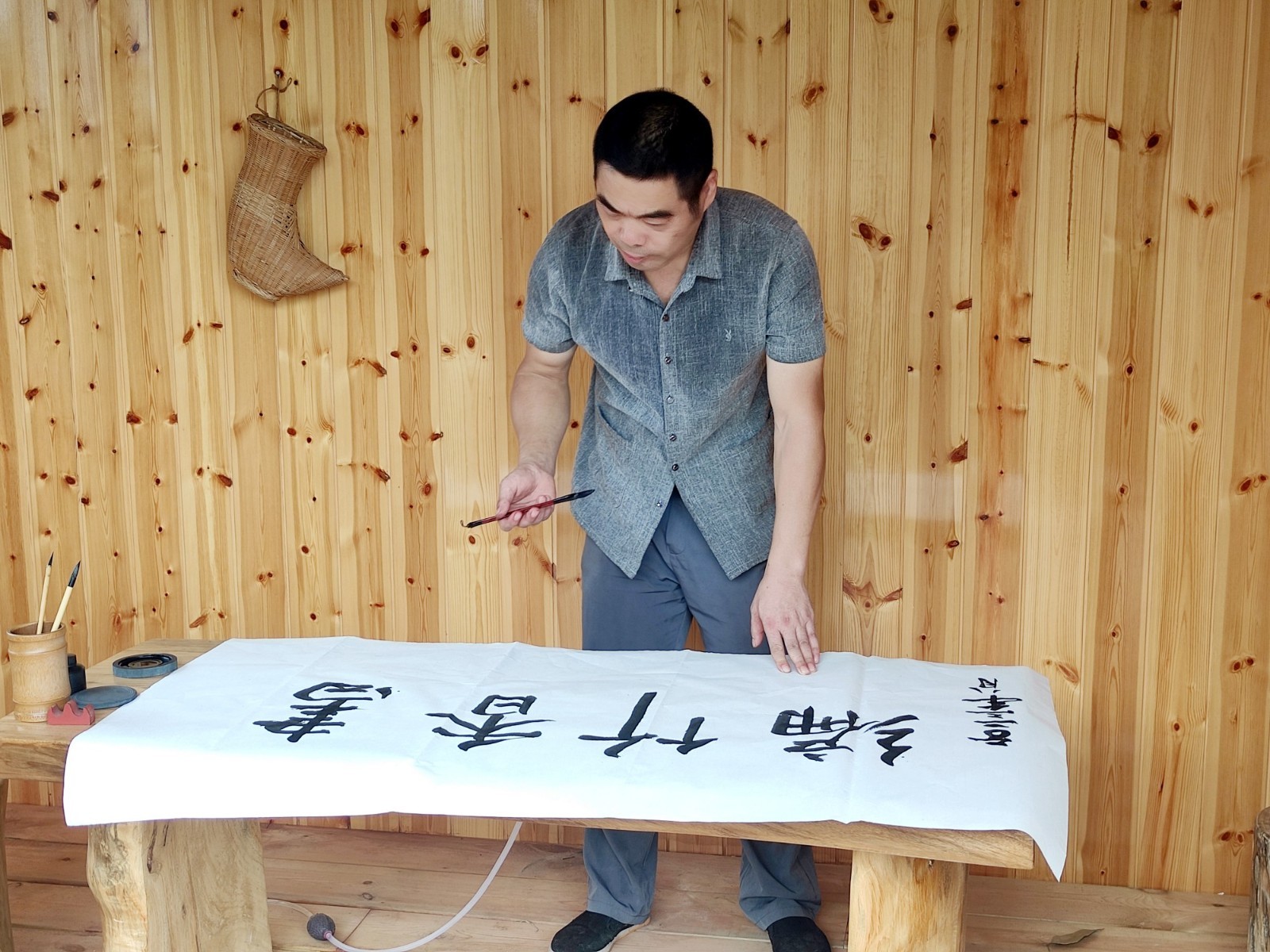 粟代良从小习得书画技艺,对诗词典故也信手拈来。读书写字通常一坐就是半天。如今,70多岁的母亲评价他:从小就是一个能静心、有耐心的人。这也是粟代良能成为书画竹编传承人的“法宝”。