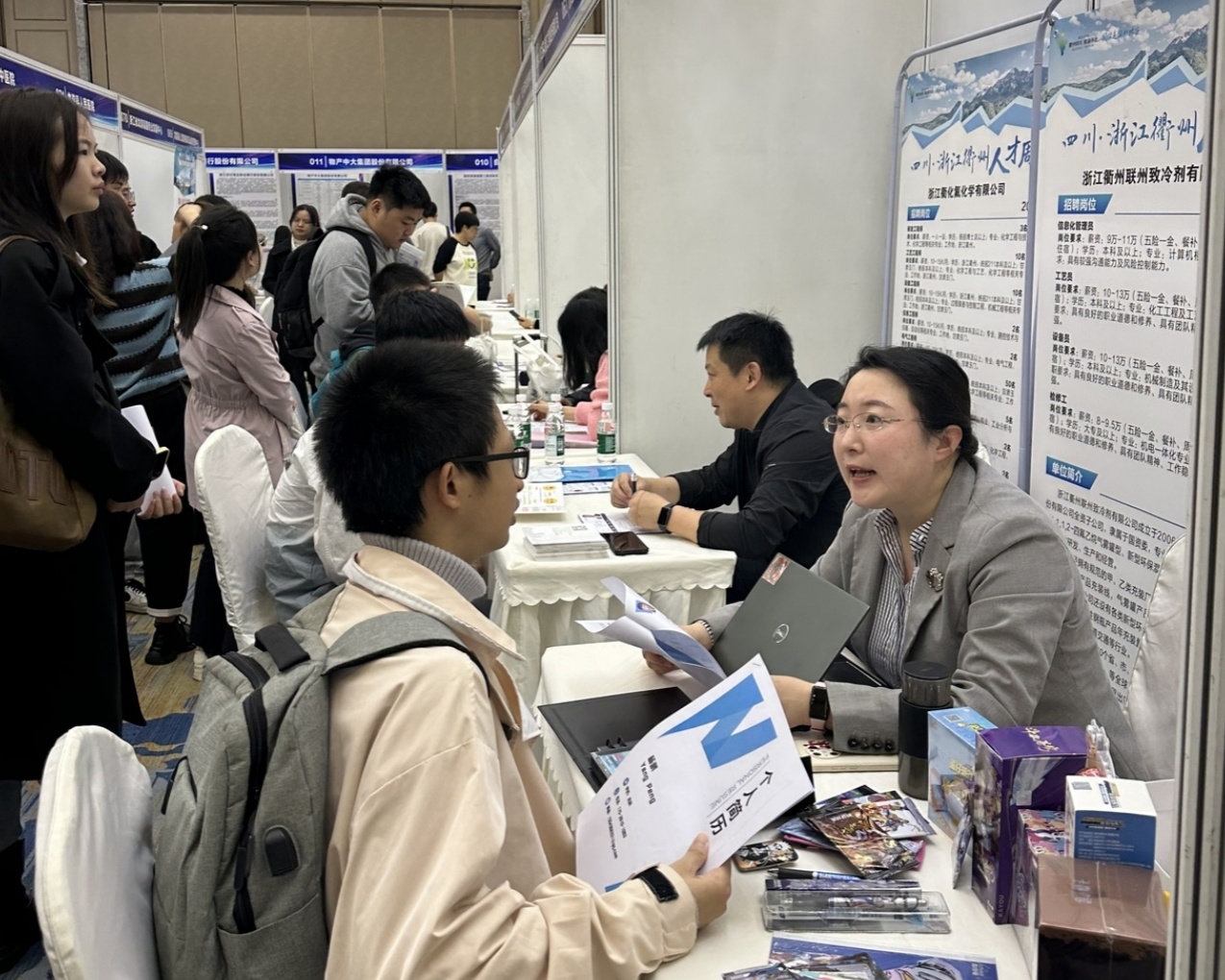 据介绍,本次活动共邀请了浙江116家优质企事业单位组团来川招聘,推出各类就业岗位6300余个,涉及信息技术、机械制造、生物制药、能源化工等数十个热门行业。活动现场共有60余所高校5000余名应届毕业生到场参会,现场累计投递简历2400余份,达成初步意向超1100余人。