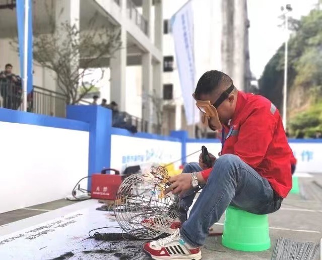 裁切、塑形、拼接、焊接……11月9日,自贡市第四届“盐都能工巧匠”技能大赛决赛现场,彩灯制作项目组的18名参赛选手正熟练操作各道工序,一根根铁丝在他们的手中穿梭游走,焊花飞溅间一个个卡通恐龙活灵活现出现在眼前。