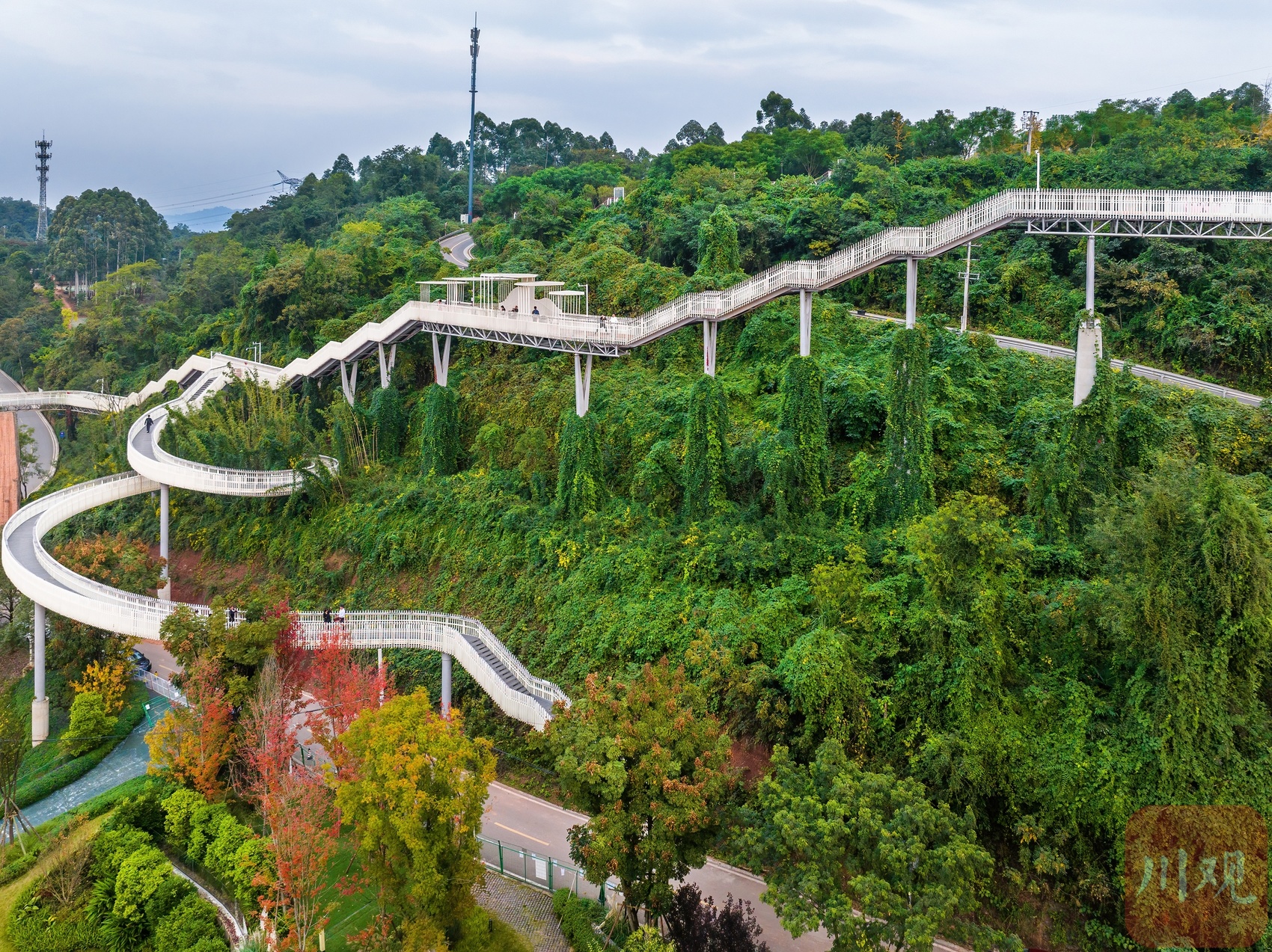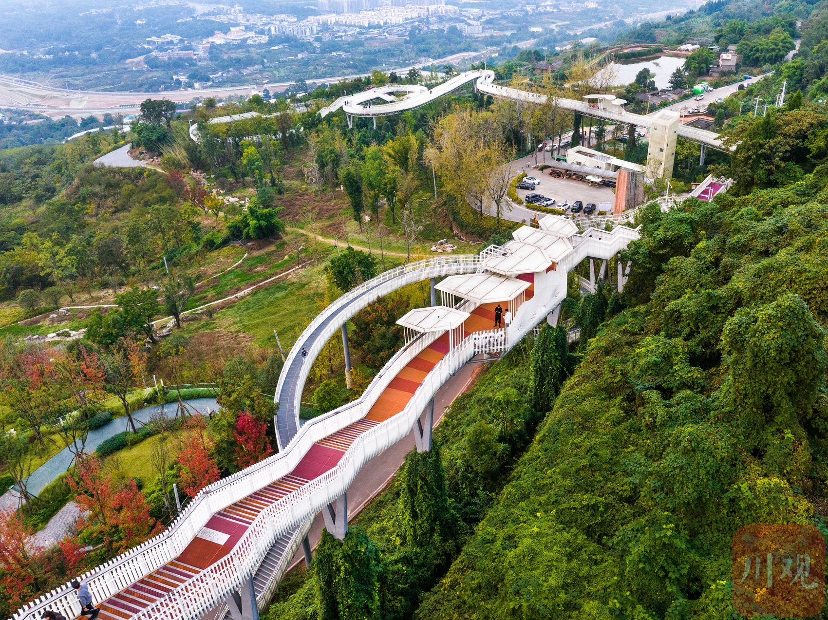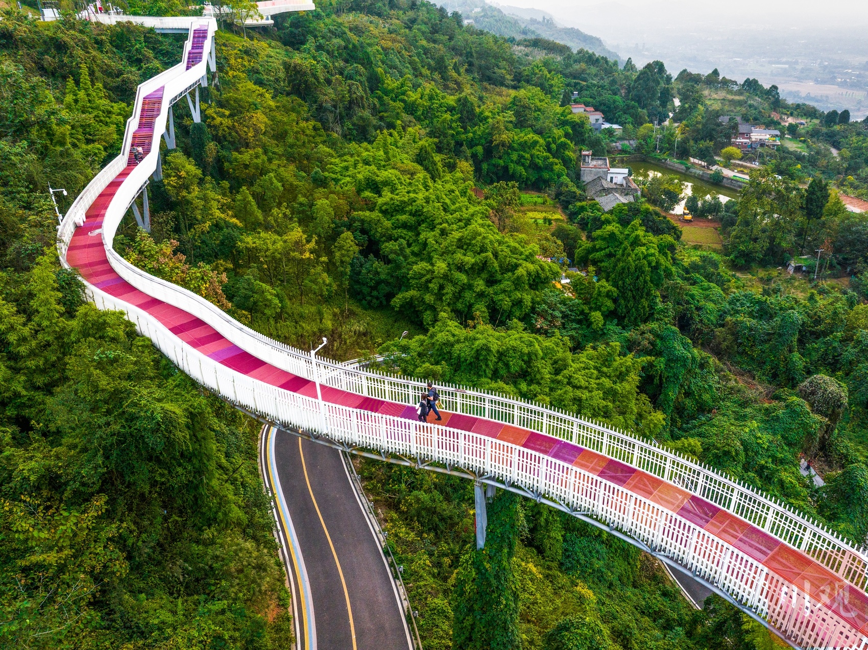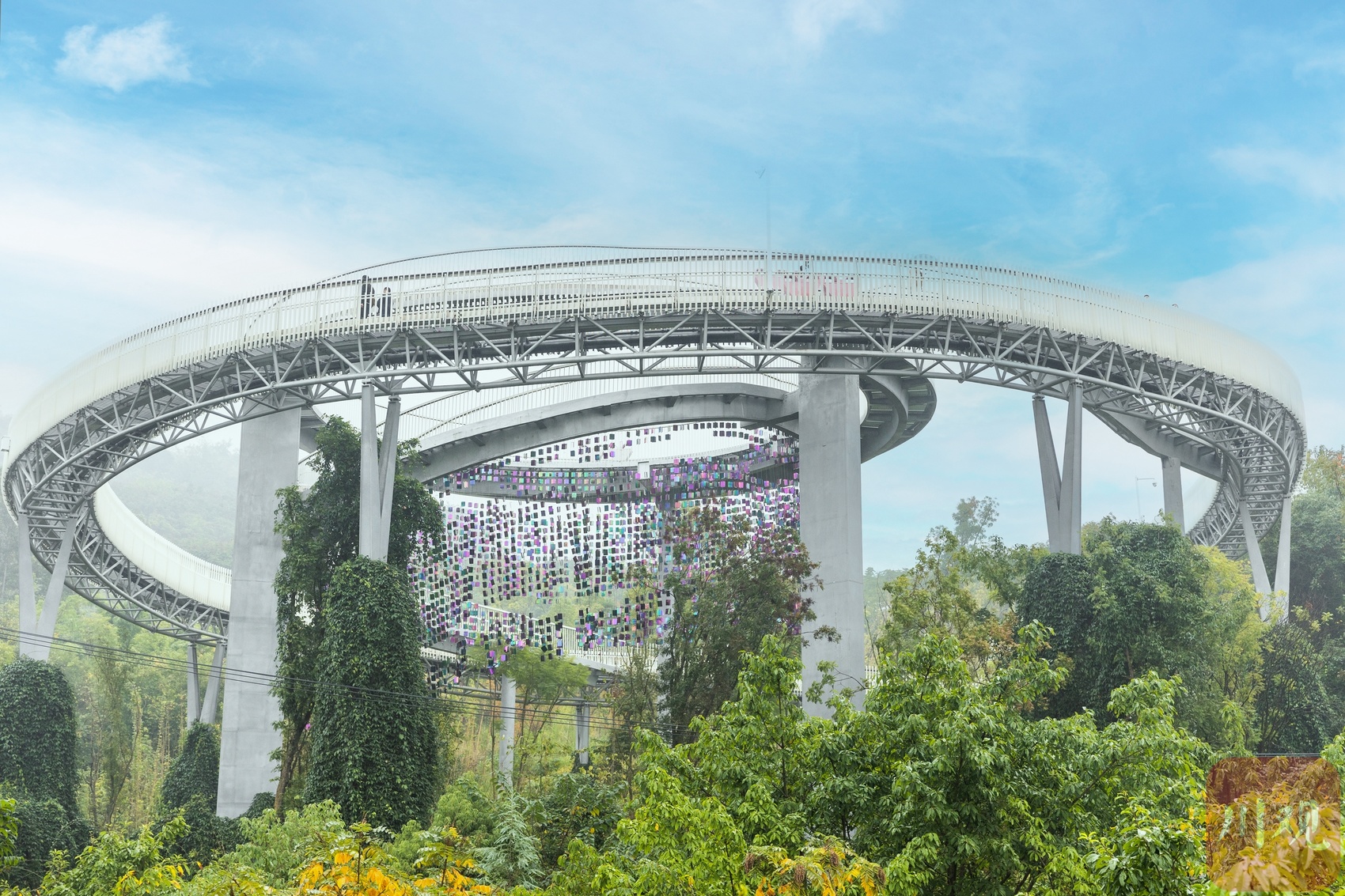 近日,新晋“网红”龙泉山森林绿道高空栈道成了成都人新的打卡目的地。这条高空栈道以浪漫爱情为主题,依龙泉山而建,似“漂浮”于森林之上,绵延蜿蜒入云端,每个转弯仿佛都是爱情的形状。行走于栈道之上,感受拂过山谷的微风,俯瞰是脚下郁郁葱葱的森林,远眺有远方车水马龙的城市,幽静与繁华,尽收眼底。
