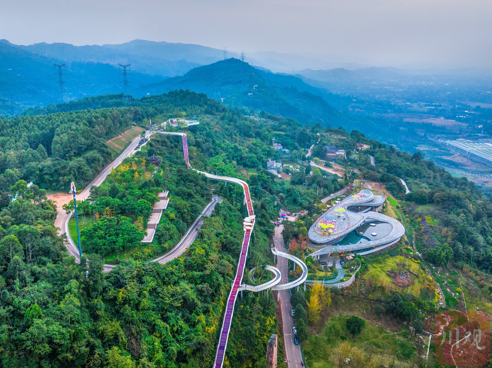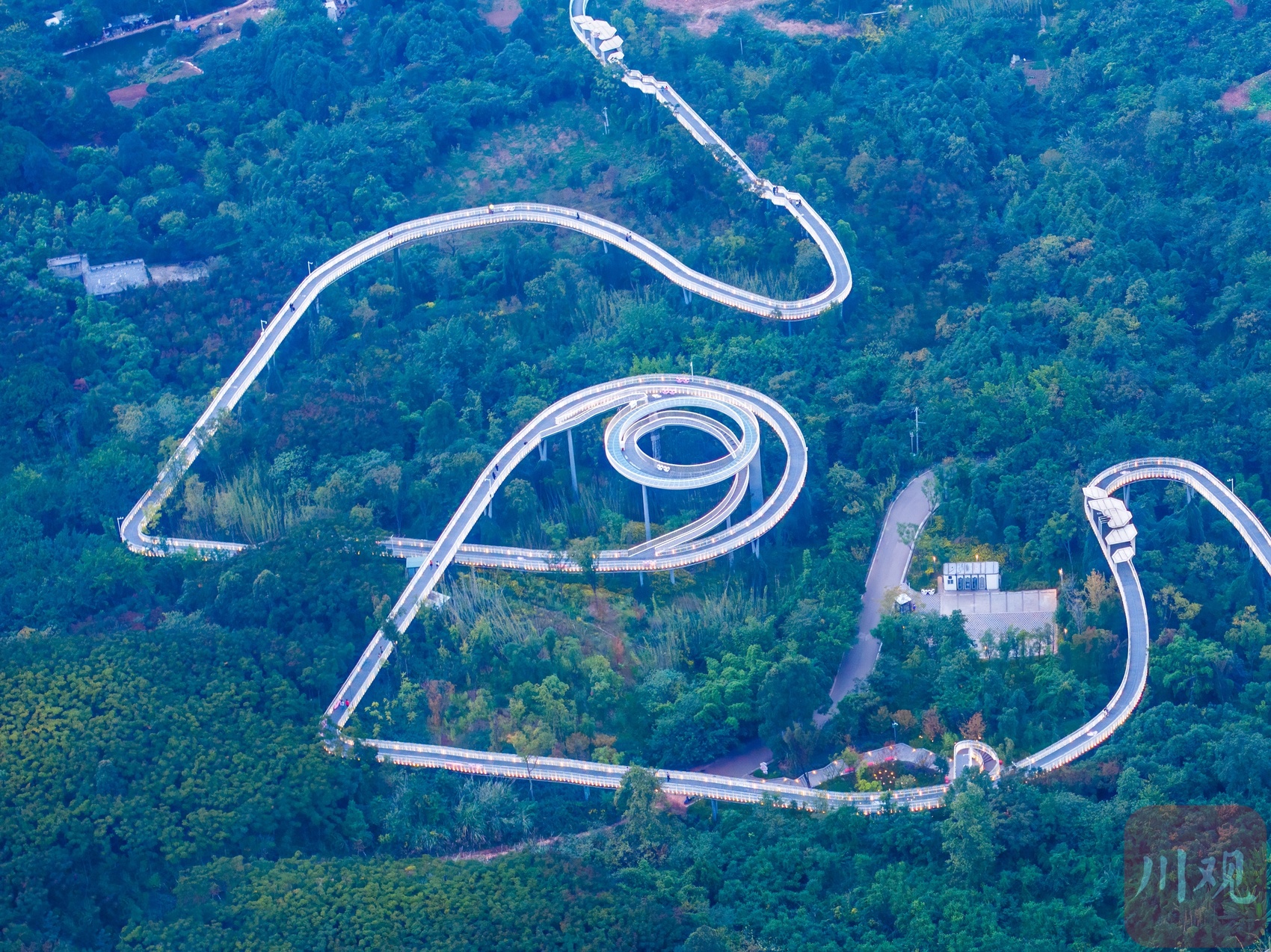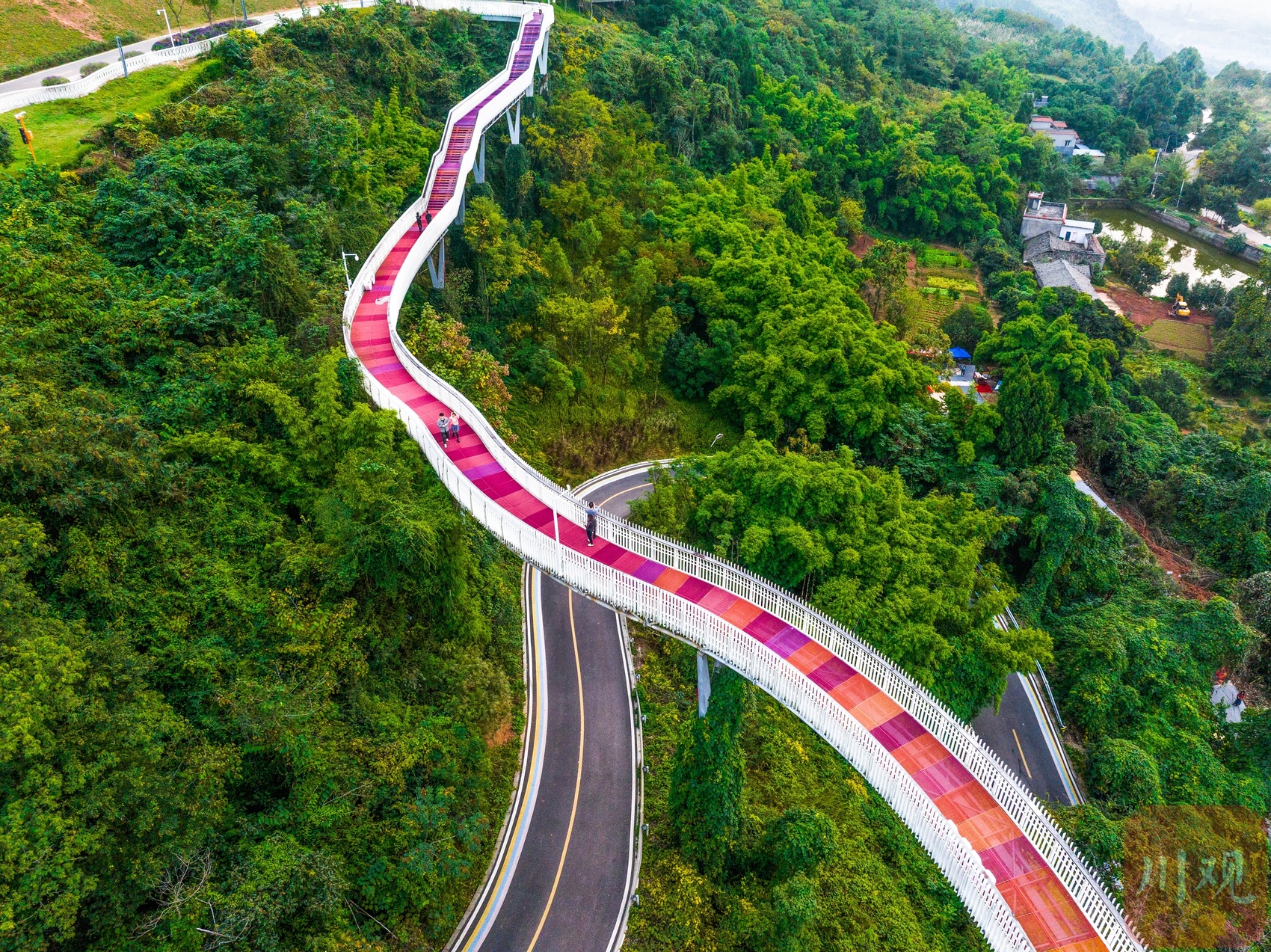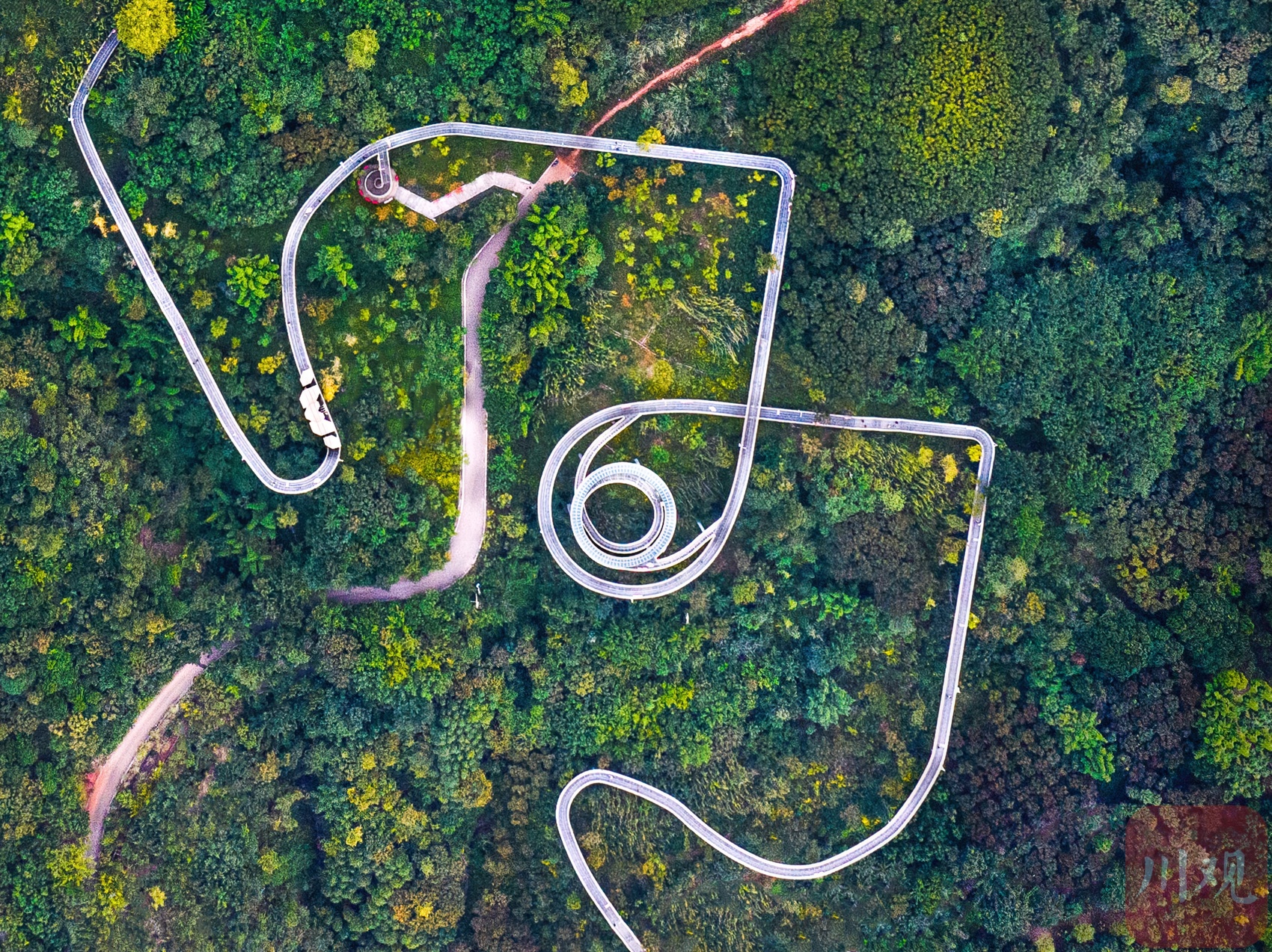 近日,新晋“网红”龙泉山森林绿道高空栈道成了成都人新的打卡目的地。这条高空栈道以浪漫爱情为主题,依龙泉山而建,似“漂浮”于森林之上,绵延蜿蜒入云端,每个转弯仿佛都是爱情的形状。行走于栈道之上,感受拂过山谷的微风,俯瞰是脚下郁郁葱葱的森林,远眺有远方车水马龙的城市,幽静与繁华,尽收眼底。