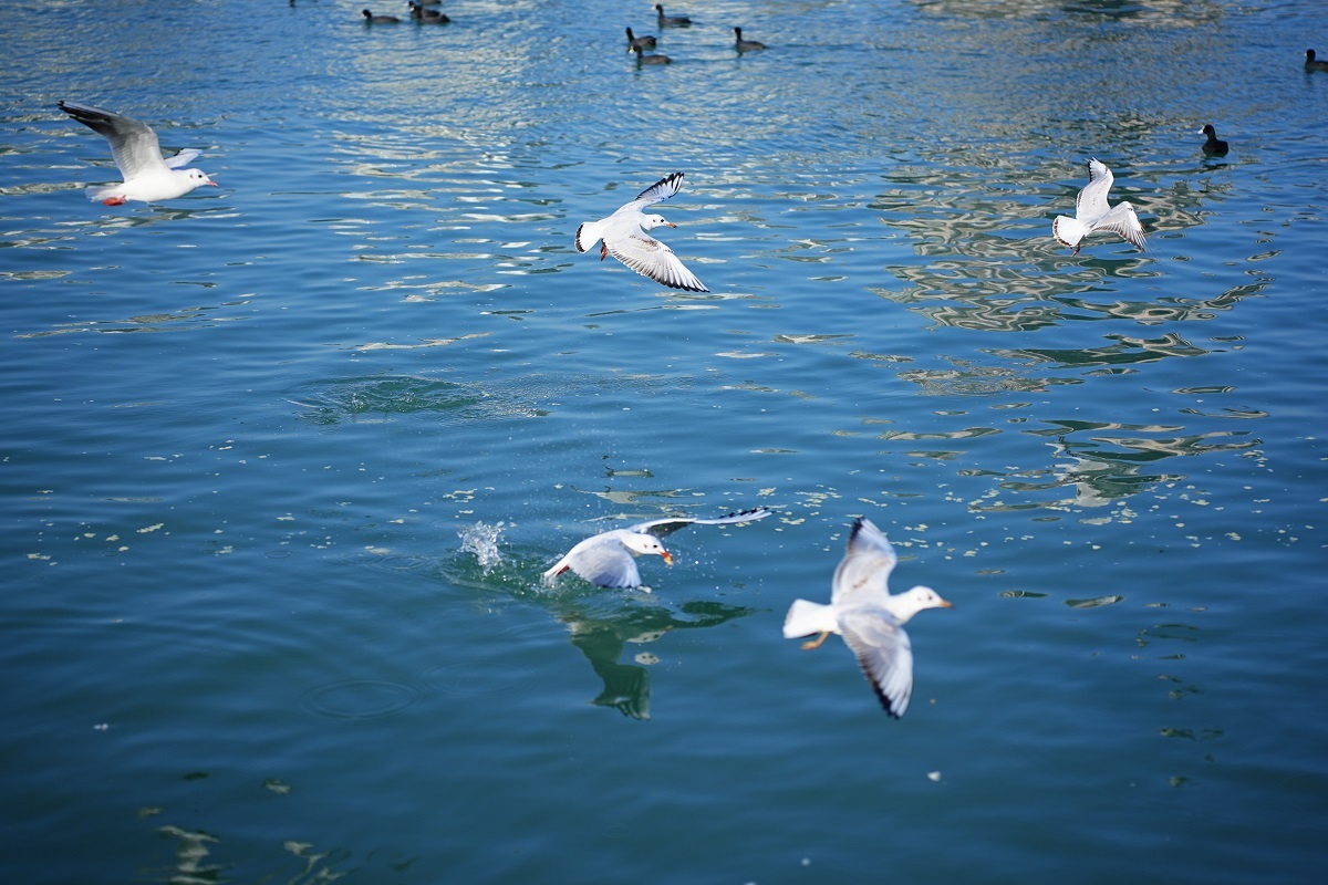 近日,在绵阳游仙三江半岛景区,数百只红嘴鸥云集,有的在天空翱翔,有的在水面悠游,还时不时发出欢快的叫声。洁白似雪的羽毛,轻快有力的翅膀,深邃晶莹的眼睛,在暖阳下,宛如翩翩起舞的“小精灵”。