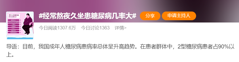 医学期刊《内科学纪事》刊发的一项研究发现:熬夜更易导致糖尿病。