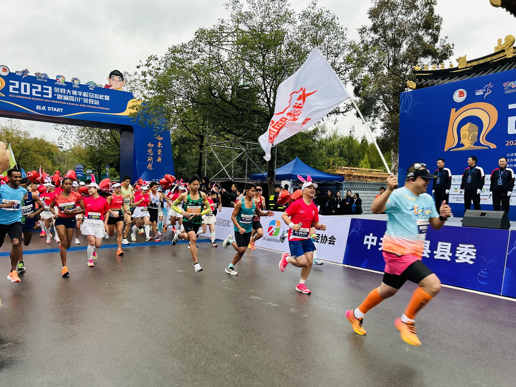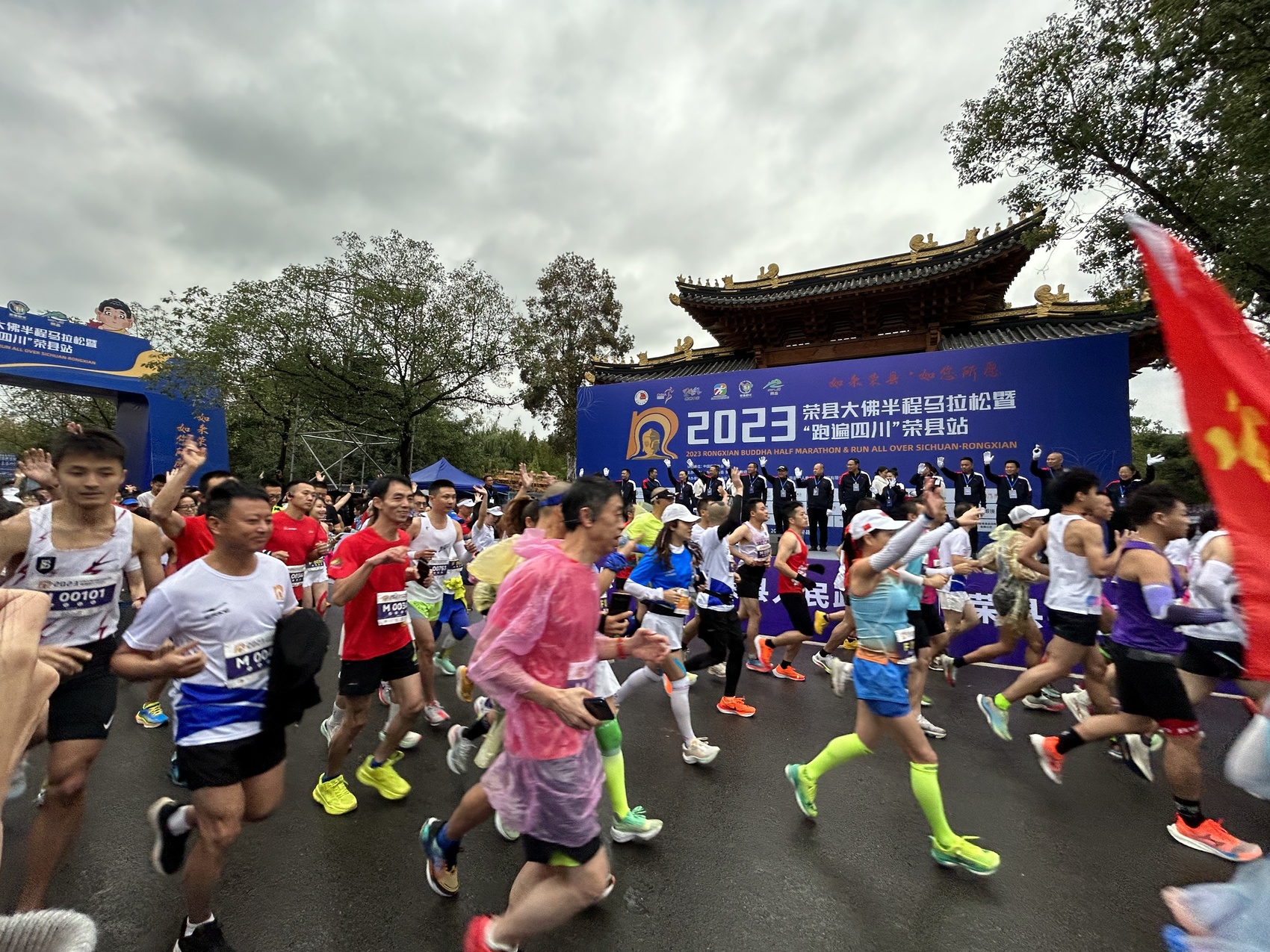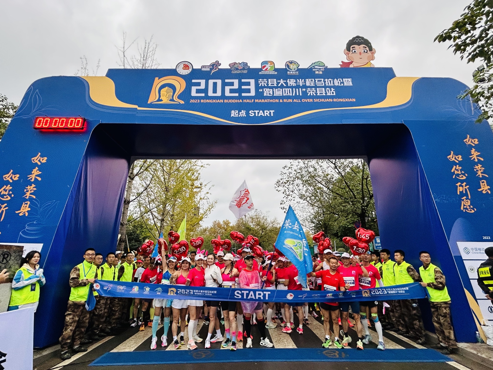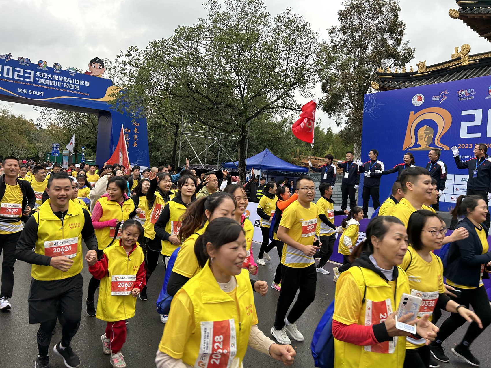 11月12日,2023荣县大佛半程马拉松暨“跑遍四川”荣县站在荣县大佛寺景区鸣枪起跑,来自国内外6000名跑友齐聚“田园荣州”,感受荣县秋日独特的自然风光和浓郁的人文风情。