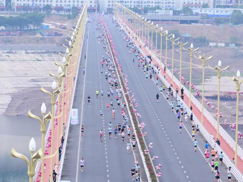 上午8时30分,随着一声发令枪响,1900名半程马拉松、1000名迷你马拉松以及3100名欢乐跑选手相继从荣县大佛景区起点出发,途经镇南塔、黄桷堰公园、青阳公园等五个运动主题公园,赛道连接起荣县老城区和新城区,跑者沿途既可以感受历史的厚重,又能体验到新时代新征程带给这座城市的变革与活力。