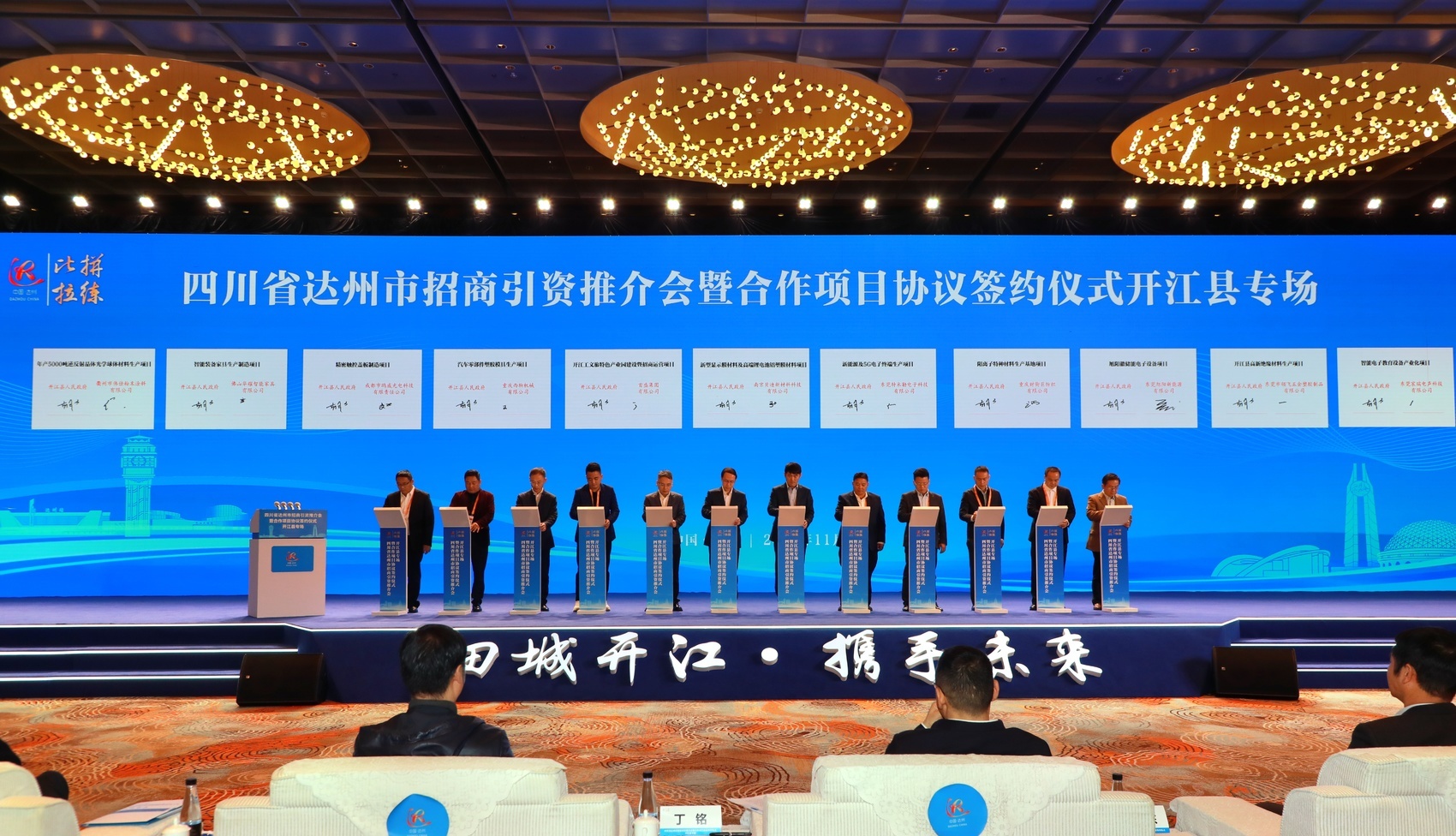 11月14日,达州市招商引资推介会暨合作项目协议签署仪式开江县专场在江苏省南京市举行,共吸引100余家企业和商协会代表参加。