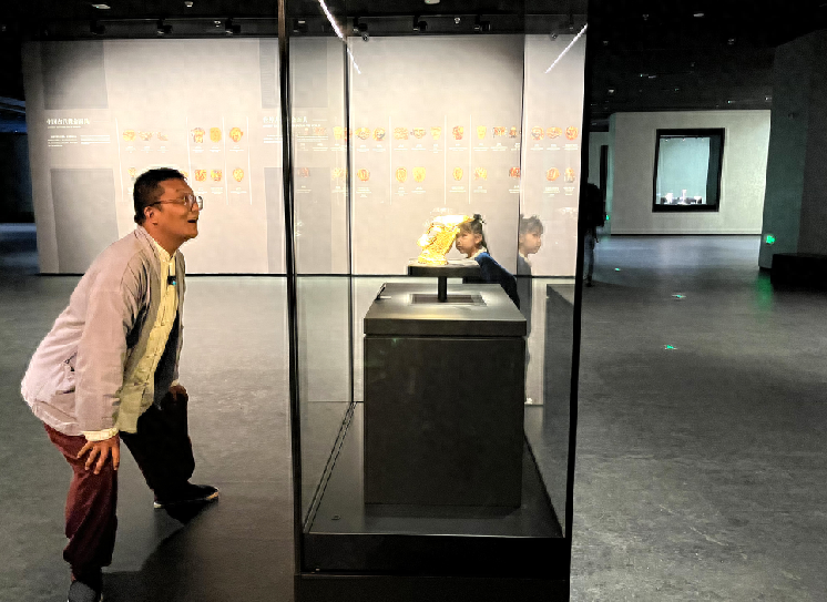 廉政瞭望·官察室记者跟随拥有1500多万粉丝的旅游博主小黑诸鸣到访三星堆博物馆。看到一名游客在一具金面具展柜前半蹲身子拍照,诸鸣绕到其镜头后面,看到金面具通过展柜玻璃折射的影像刚好落在游客脸上,宛如给游客“戴”上了一样。