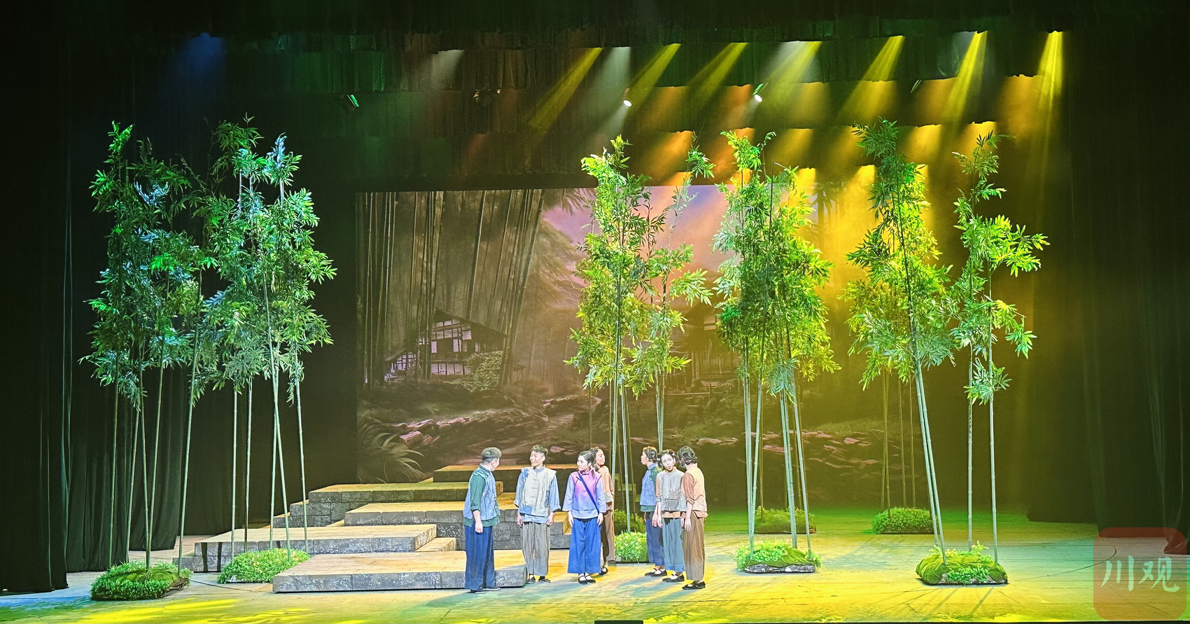 翠绿的竹林、飘飞的竹叶……《少年江姐》一开场,一片茂密的竹林就映入观众眼帘。与多数舞台剧歌颂江姐“红梅品格”不同的是,该剧目以“竹”作为关键元素,讲述江姐在江家湾成长,受到这片土地的滋养,为她后来成为革命战士埋下了红色种子的故事。“竹元素既是江姐名字和人格的隐喻,也是故乡风土在人物身上的情感寄托。”该剧总导演刘为介绍。