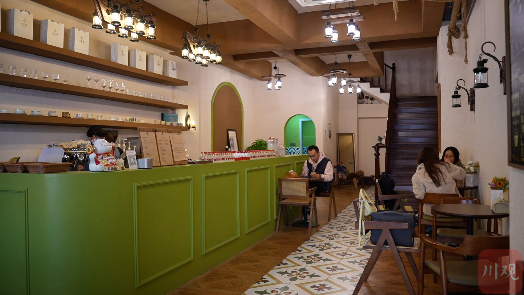 宜宾市叙州区鲁能原著荟附近,一家以牛油果绿色为主色调,整体装修美式复古风的“Foam Coffee”咖啡店格外醒目。