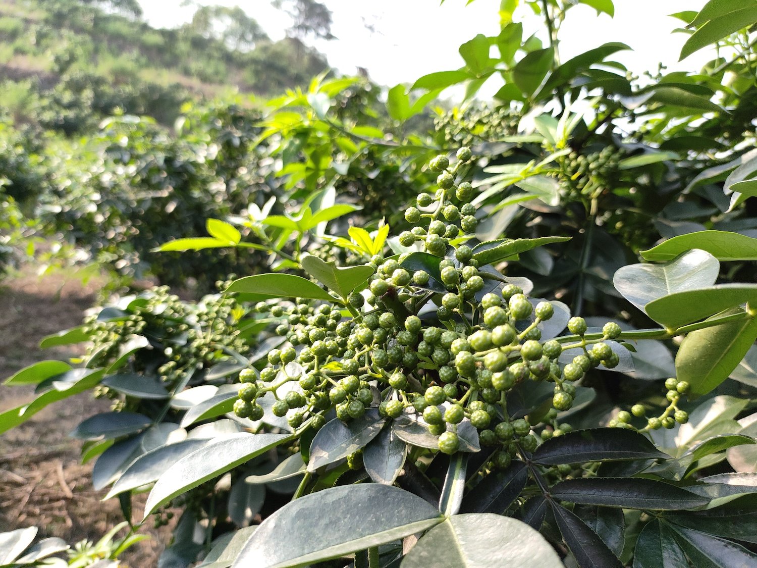 “开心花椒”种植基地的花椒树。