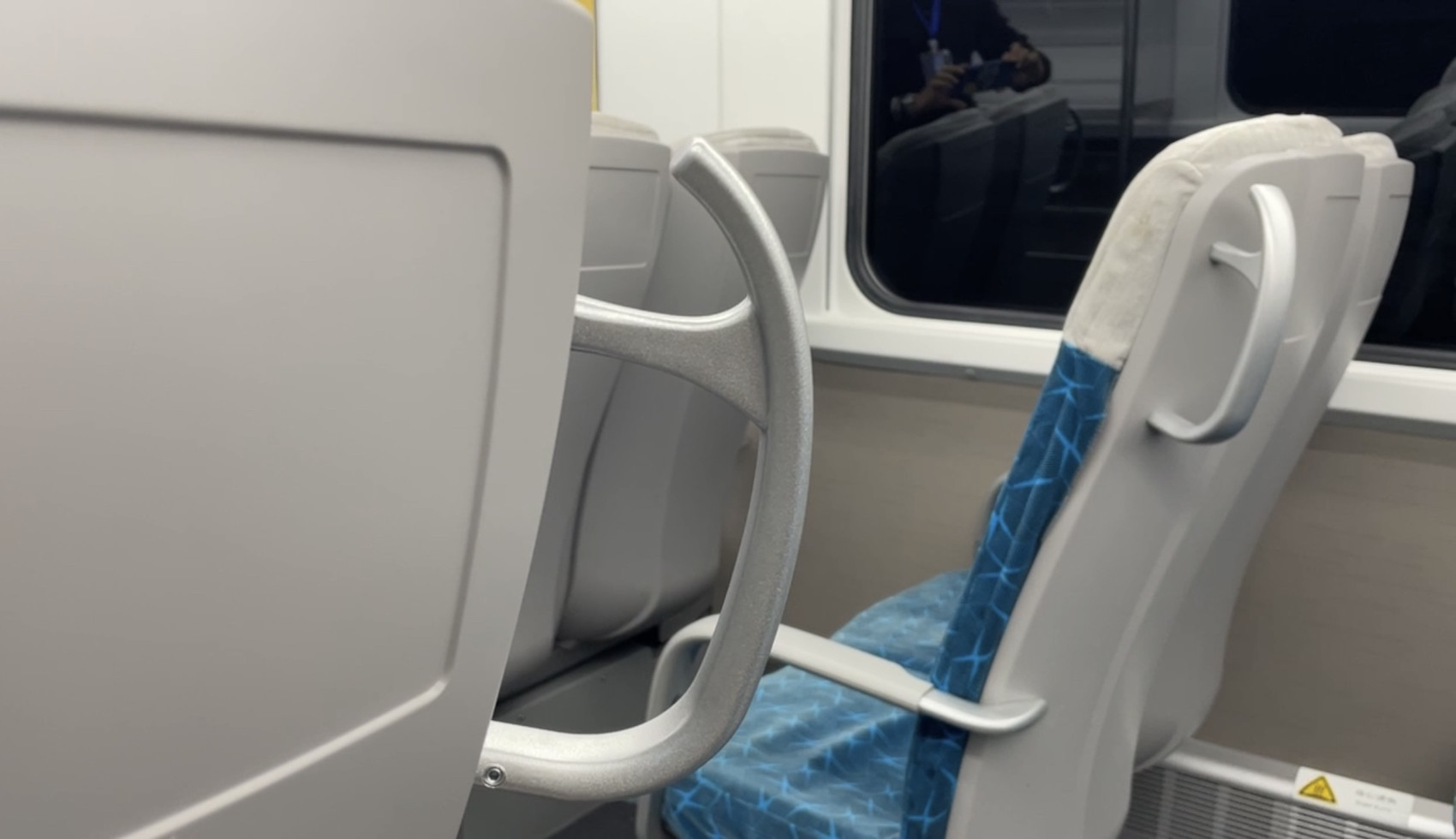 19号线二期列车内部座椅新增挂钩(蒲南溪 摄)