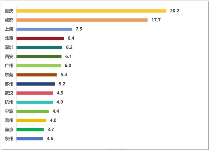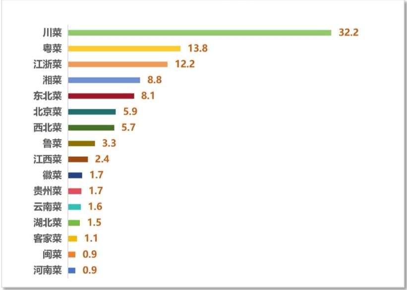 《报告》显示,截至2023年上半年,川菜门店数量已超过32万家,远超粤菜、江浙菜等菜系门店数量,是名副其实的全国第一大菜系。 其中,川渝两地是川菜“大本营”,上海、北京、深圳等地的川菜门店数量也在逐年增长。在传统川菜热卖菜中,青花椒烤鱼排名第一,冒菜鸡血旺则为新派川菜热卖菜中最受欢迎的菜品。