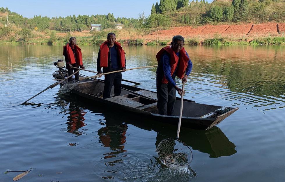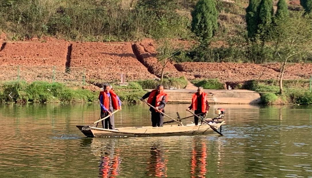 午后的琼江在暖阳下泛起粼粼波光,“老船夫”夏洪本一行四人,驾着小船逆行而上,用网兜打捞水草、垃圾、漂浮物。这是村里的巡河员正在巡河,看沿线居民有没有偷排污水,河里是否有垃圾,有没有钓鱼……