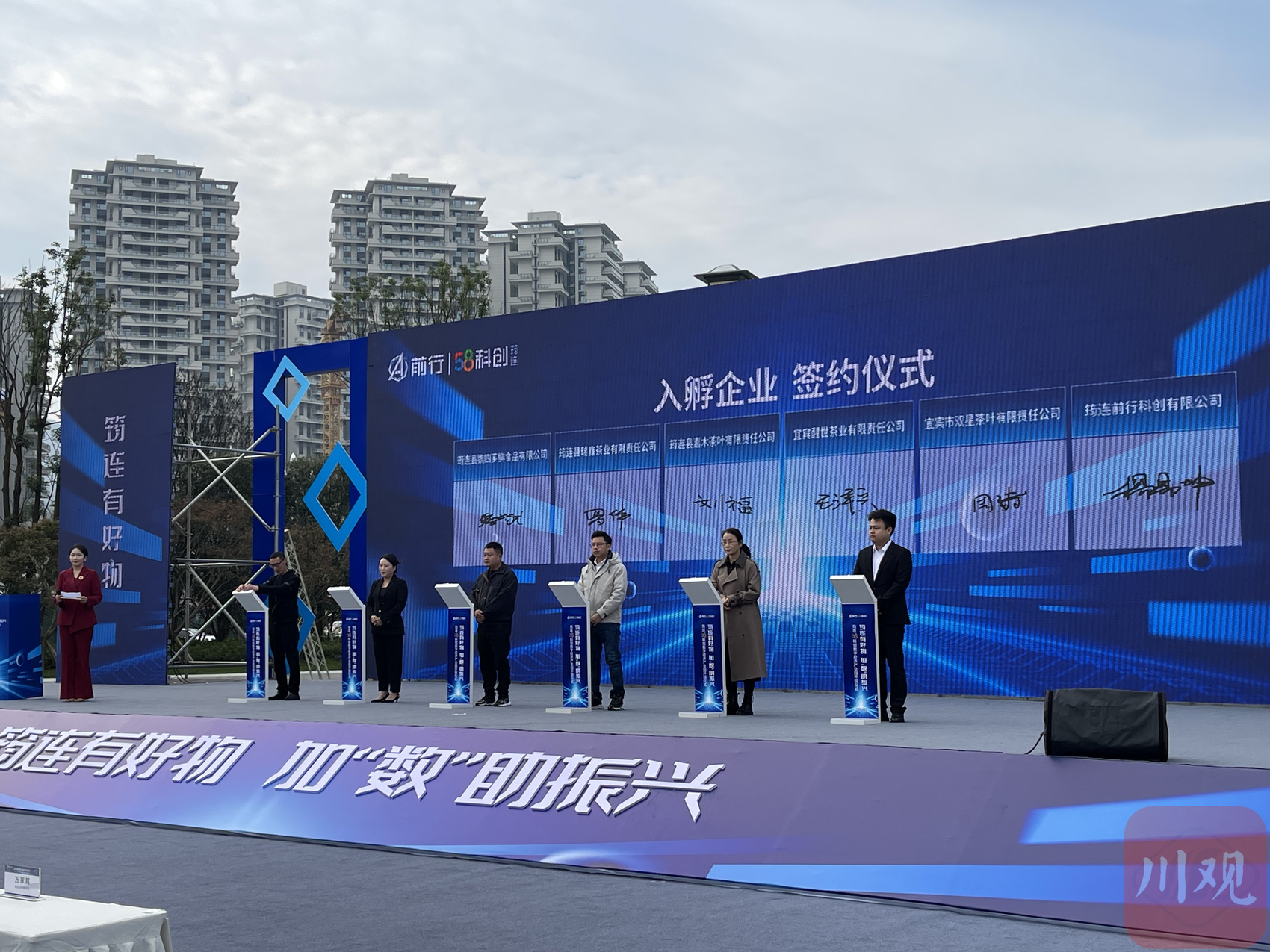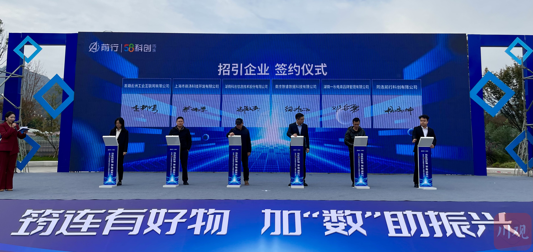 11月17日上午,筠连58科创数字经济产业园开园暨首批项目签约仪式在宜宾市筠连县定水广场举行。仪式上,筠连县为筠连妇联公益项目和筠连乡村振兴电商带头人授牌,58科创与5家产业园招引企业、10家本地入孵企业集体签约。