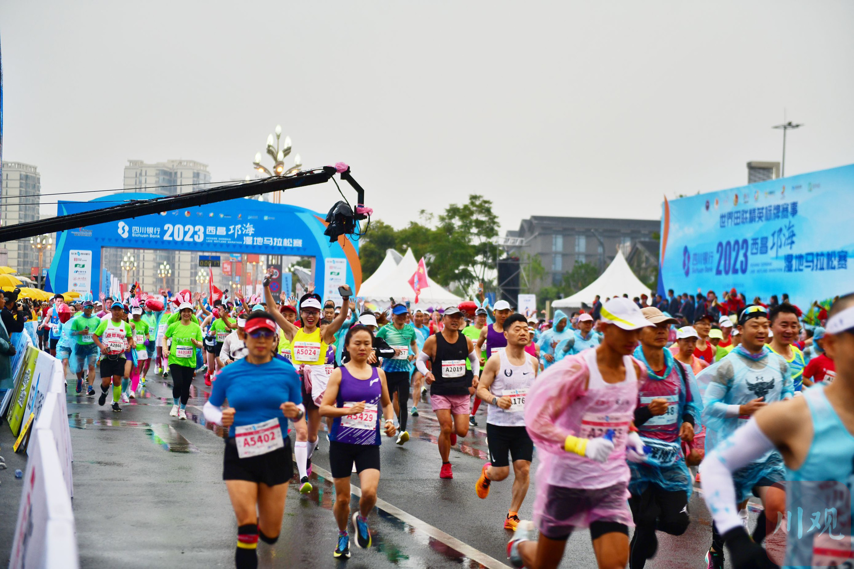 11月18日上午8时,2023西昌邛海湿地马拉松赛在国家级旅游度假区西昌邛海17度鸣枪起跑。来自中国、法国、英国、波兰、埃塞俄比亚、肯尼亚、韩国等10余个国家和地区的21191名选手参赛。