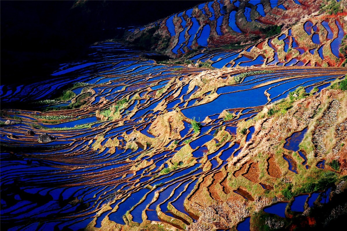 春天,你带我看你层层叠叠的绿色衣衫,那是傈僳先祖阿考的后人,用勤劳的双手把石块砌成梯田,引来龙肘山水灌溉,种植稻谷、玉米、土豆,形成了独特的“新山梯田”,把山坡划出一道道优美的曲线,让整座山峦变成规模宏大的艺术画卷。