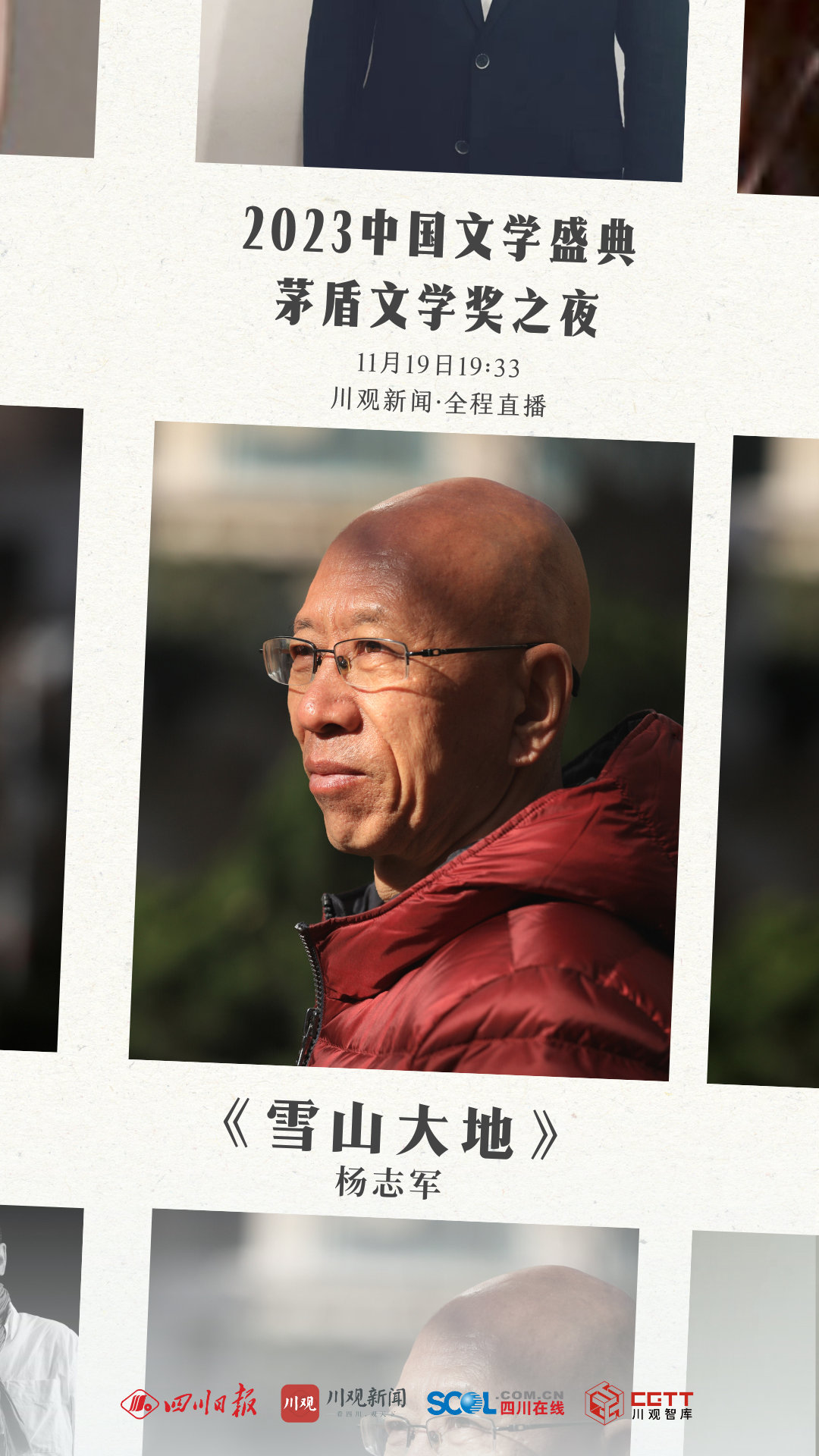 11月19日19:33,川观新闻将对“2023中国文学盛典·茅盾文学奖之夜”进行全程直播。晚会上,杨志军(《雪山大地》)、乔叶(《宝水》)、刘亮程(《本巴》)、孙甘露(《千里江山图》)、东西(《回响》)五位本届获奖作家将分享他们的创作历程和获奖心得,展现他们眼中的新时代文学风景,传播他们笔下的“中国故事”。
