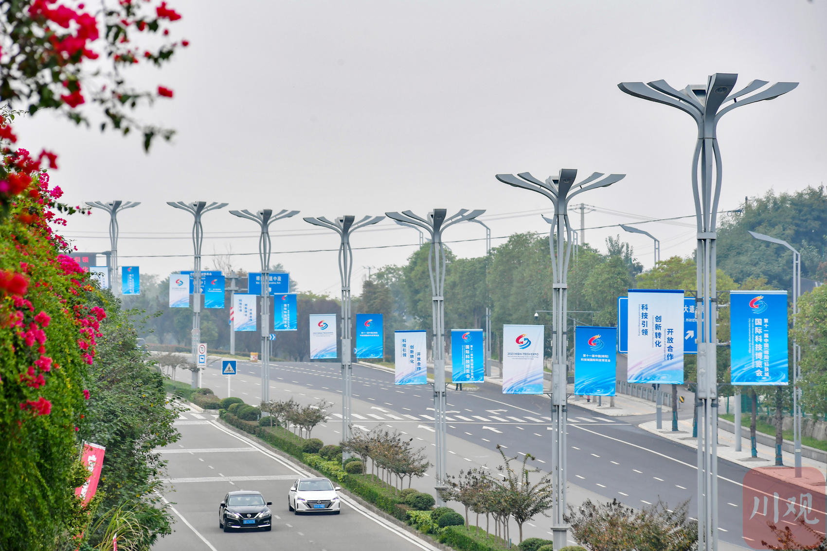 场馆内布展正紧锣密鼓地进行着,场馆外已就位的“氛围组”也处处透露着迎接这场科技盛会的浓烈气氛。近日,随着科博会的临近,以科博会“科技引领·创新转化·开放合作”为主题的景观和道旗已布置完毕。此外,高架桥上色彩绚丽的花朵,种类繁多的绿植,文明整洁的街道,城市地标的倒计时主题装置,都让绵阳的城市面貌焕然一新……绵阳正向世界展示着自己的独特魅力,以最好姿态迎接四海宾朋。