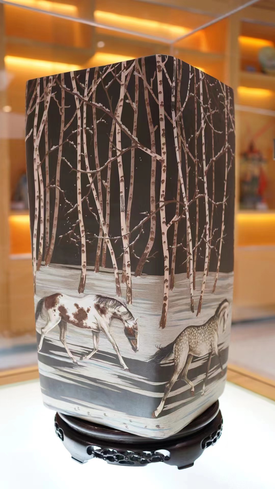 丁玉蝶创作的手绘花器《踏雪无痕》