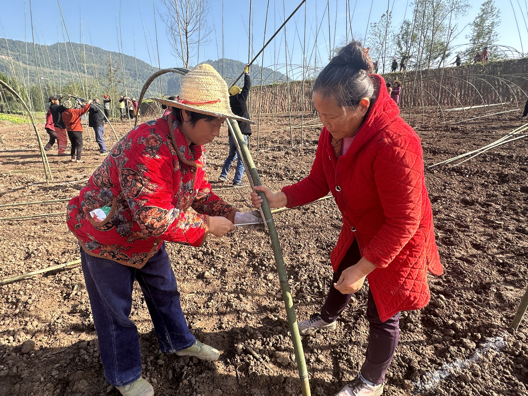 “目前正在进行土地整理、搭棚、覆膜,每天的用工量达到100多人,计划在11月下旬播种,12月初进行营养袋下放。”平昌县鑫金源种养殖专业合作社社长孙胜说。