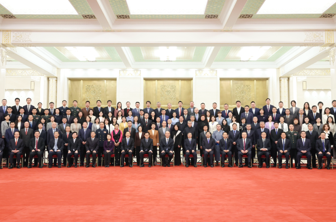上午9时30分,蔡奇来到人民大会堂北大厅,向获奖代表表示热烈祝贺,并同大家合影留念。