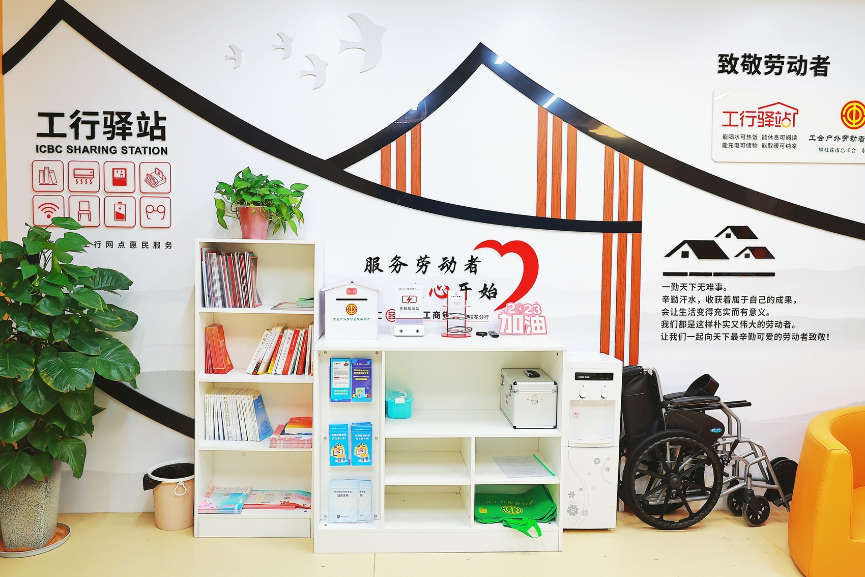 为积极践行社会责任,工行攀枝花分行持续完善惠民服务内涵和功能,全面构建“金融+非金融”服务体系,依托开设在攀枝花的18家支行,着力打造“工行驿站”服务品牌。结合营业网点实际,利用现有资源,结合实际进行功能改造,为包括环卫工人、快递员以及其他户外作业人员等社会公众,提供“歇歇脚、充充电、挡挡雨”等多项公益惠民暖心服务。