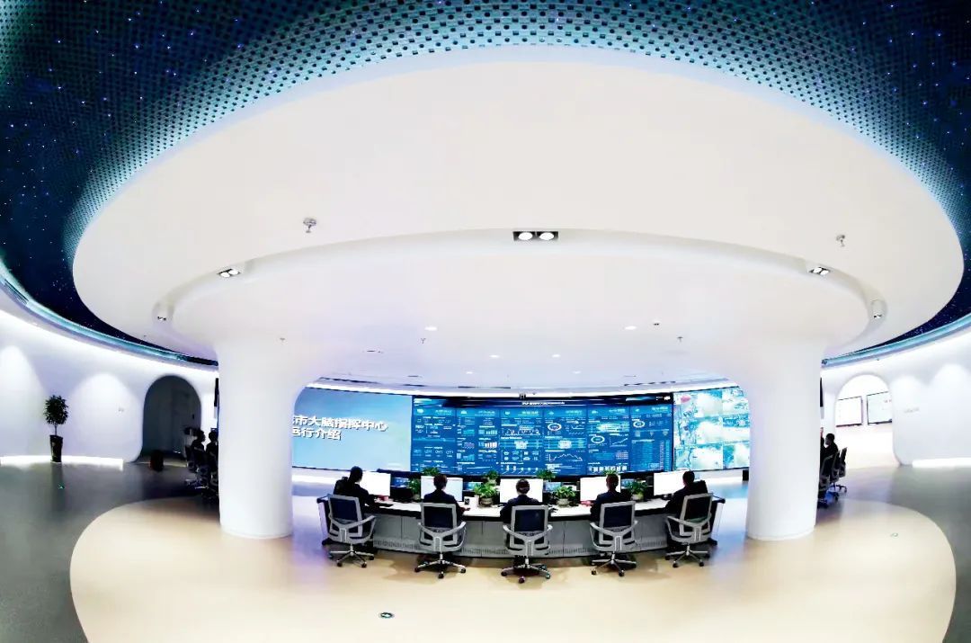 2021年2月2日,江西省抚州市东乡区城市大脑指挥中心,工作人员通过城市大脑指挥平台实时监控、抓取、分析相关案件。