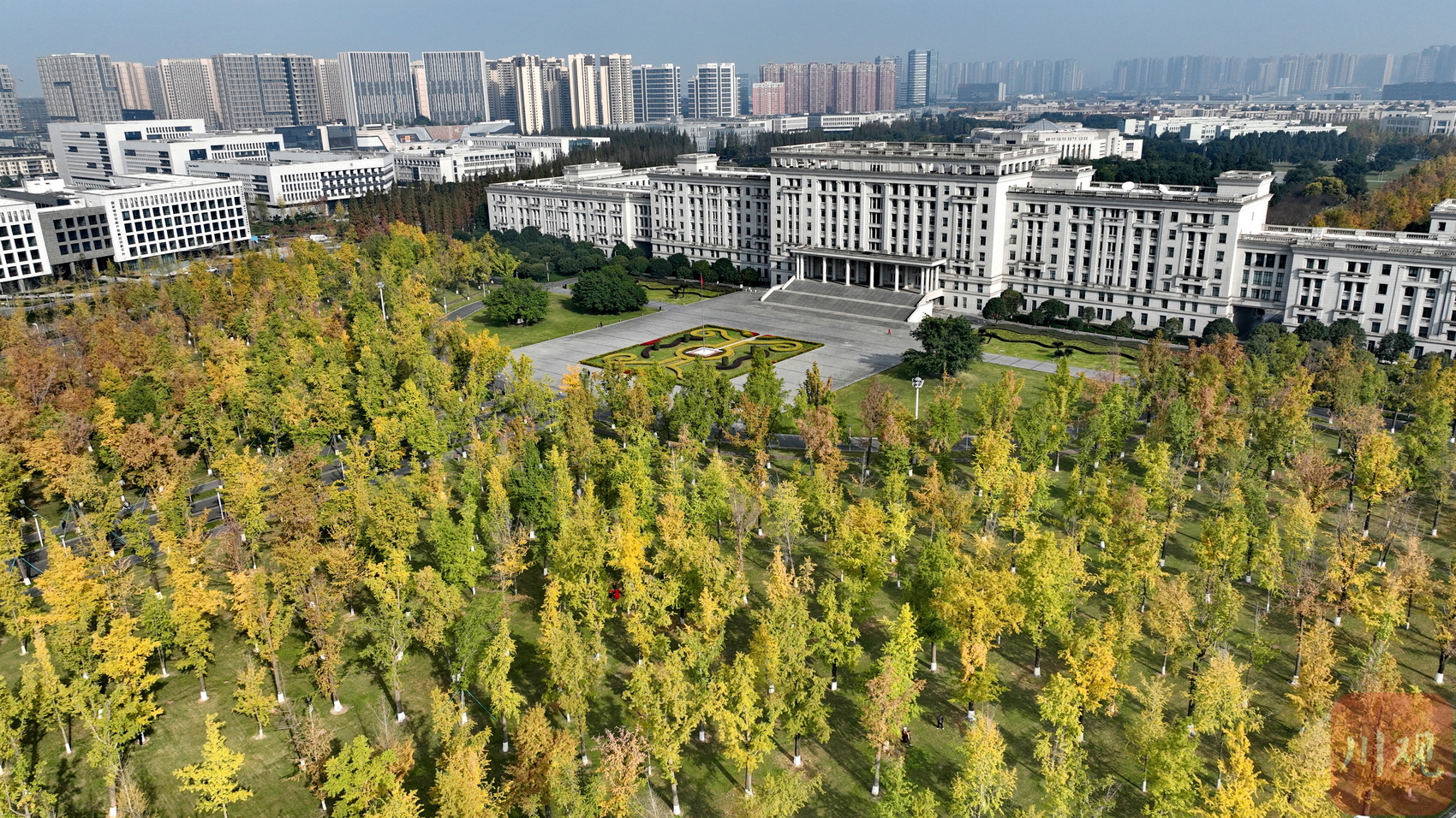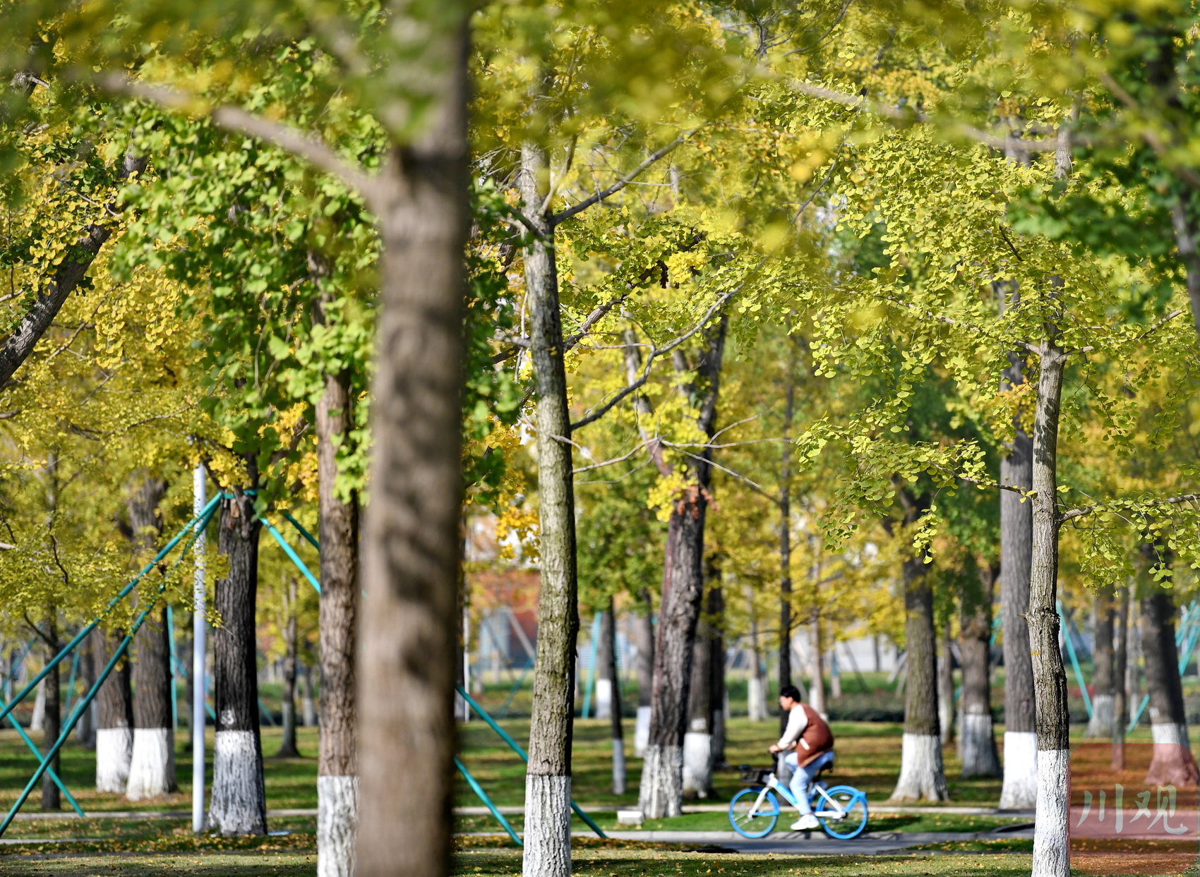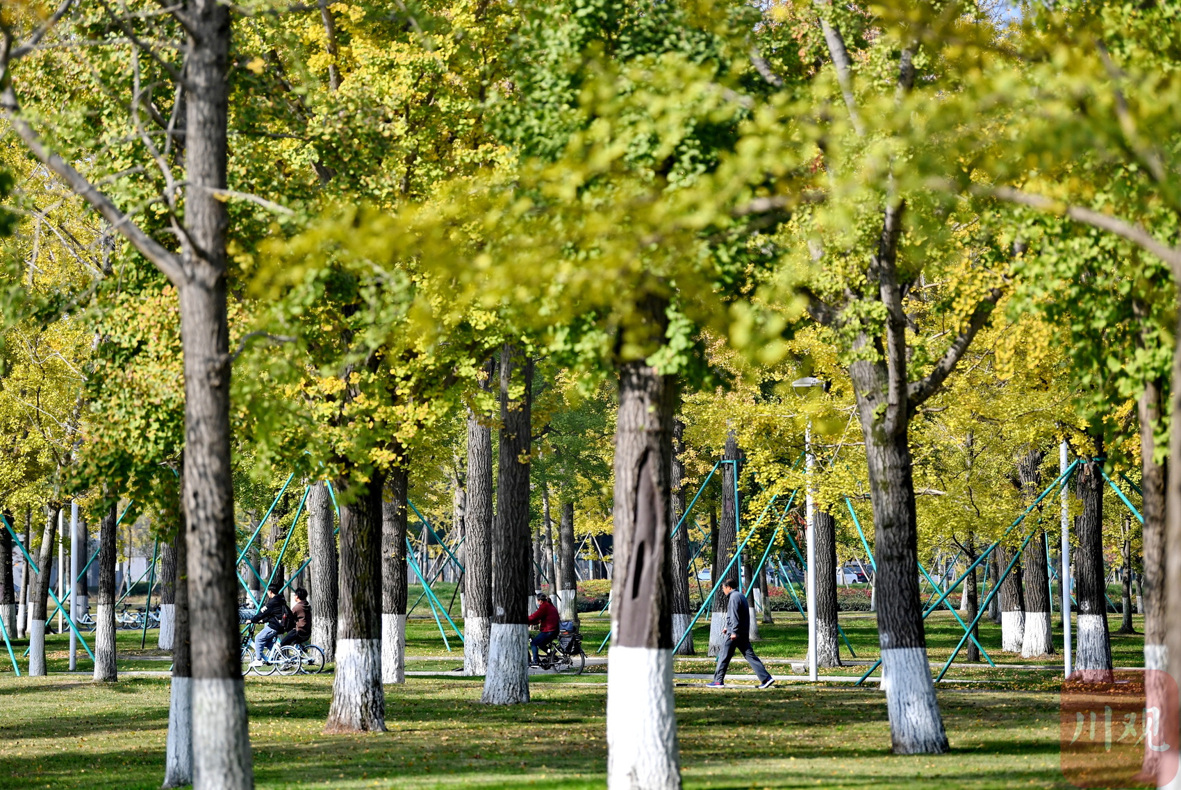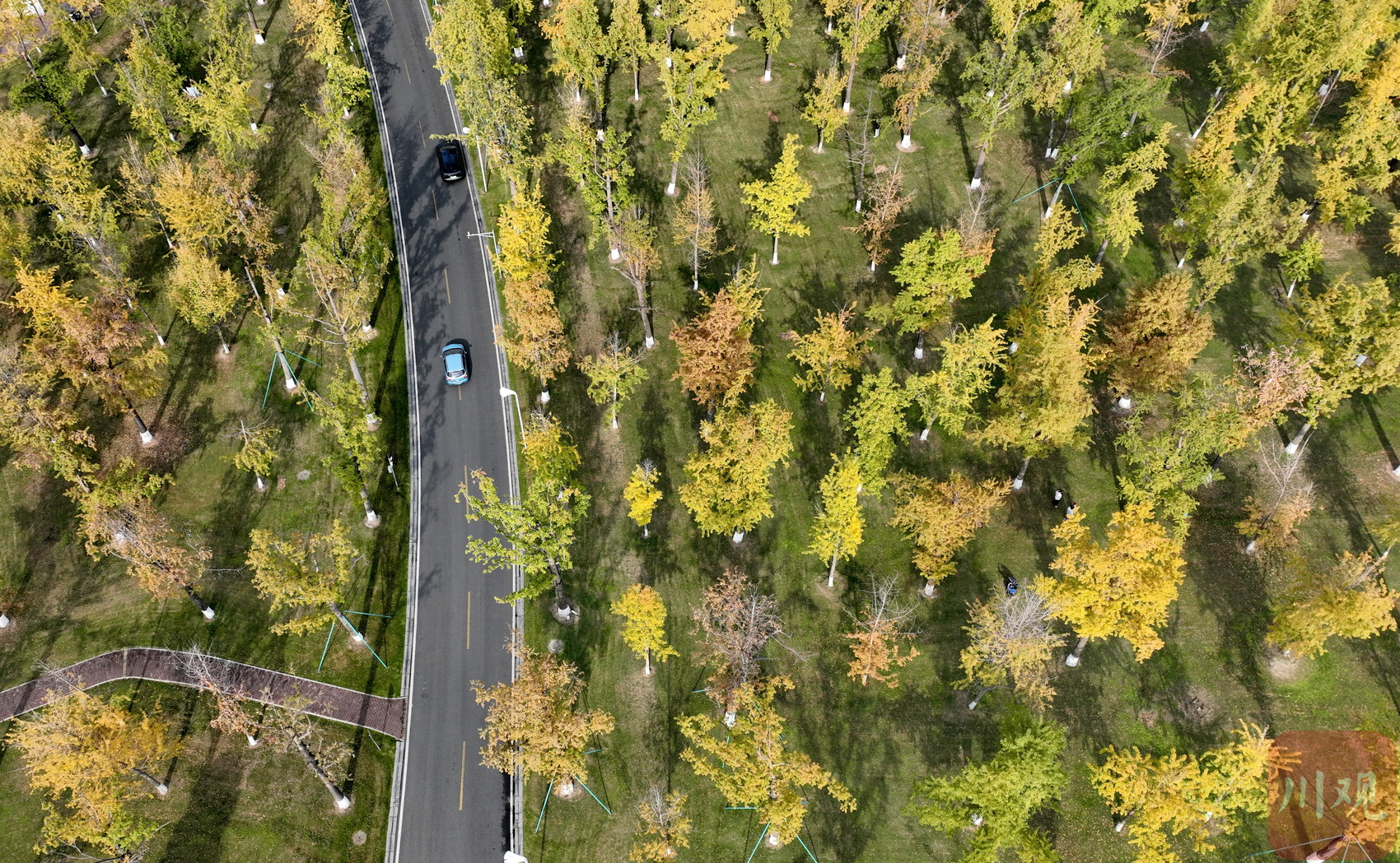 2023年11月22日,在电子科技大学清水河校区,泛黄的银杏林犹如一幅风景画。