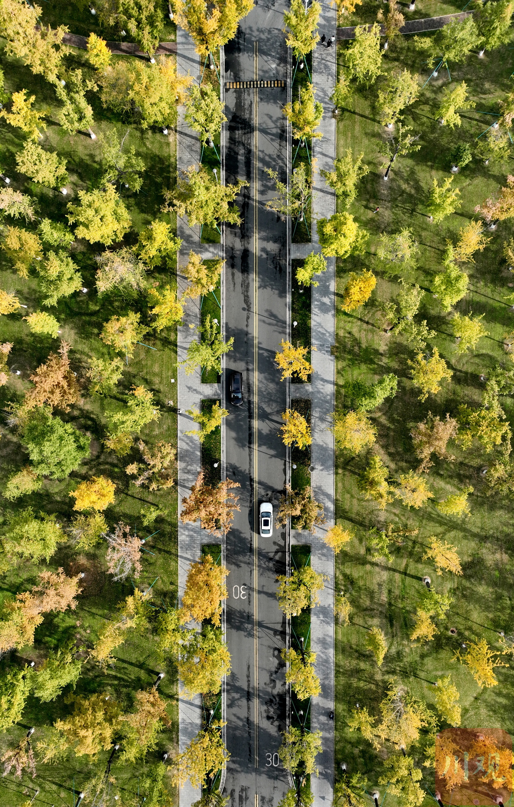 2023年11月22日,车辆穿梭在电子科技大学清水河校区银杏林中。