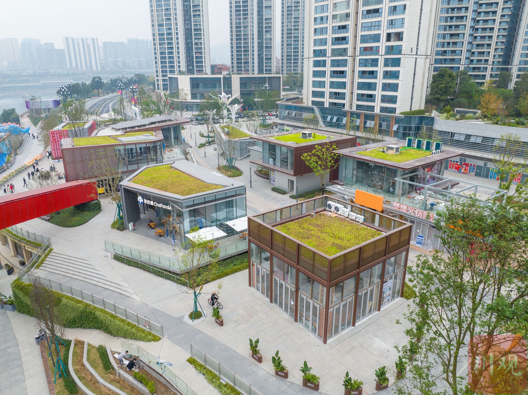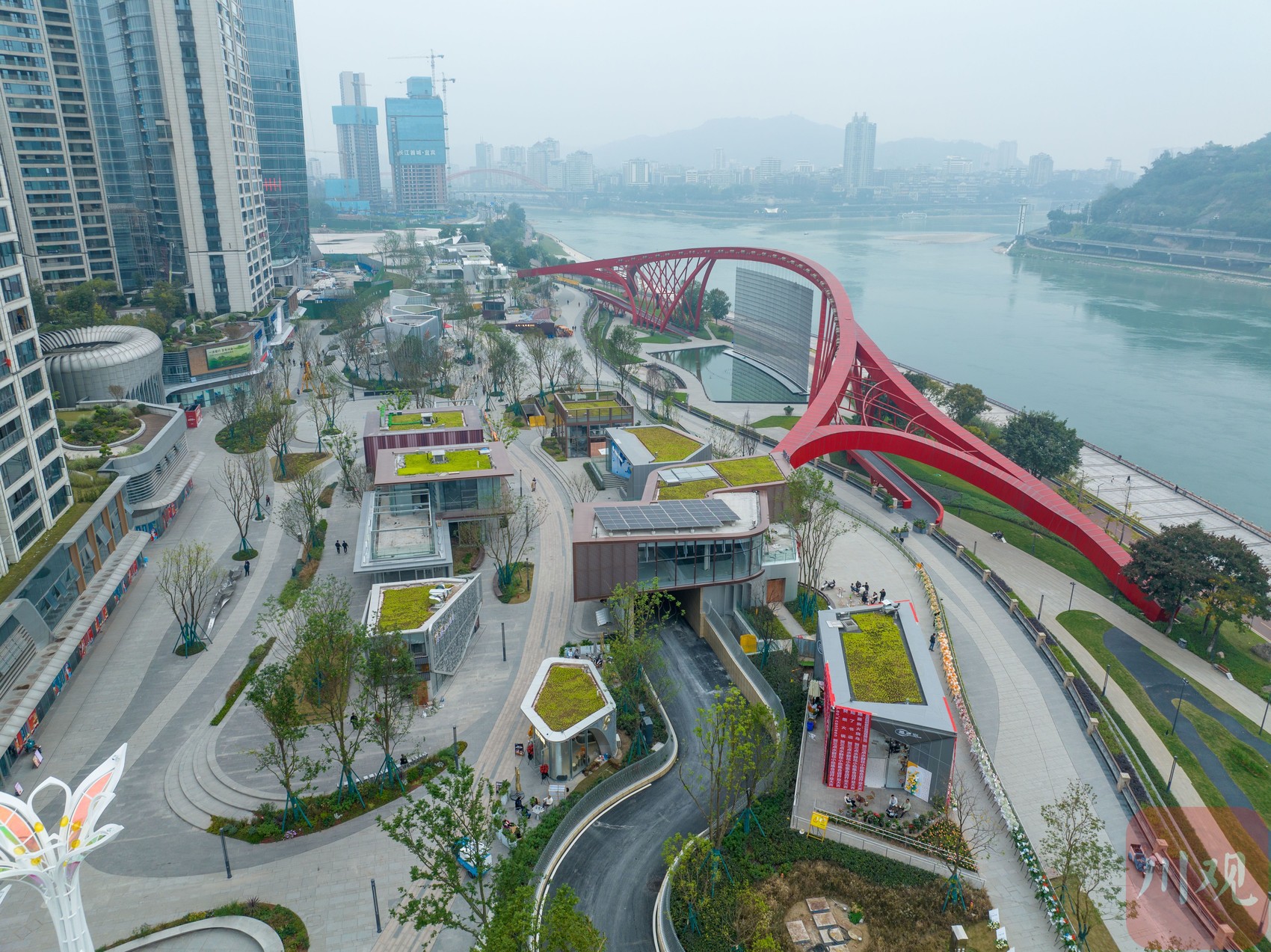 11月21日,宜宾市叙州区长江公园步行街,造型各异的“商业盒子”陆续开门迎客。